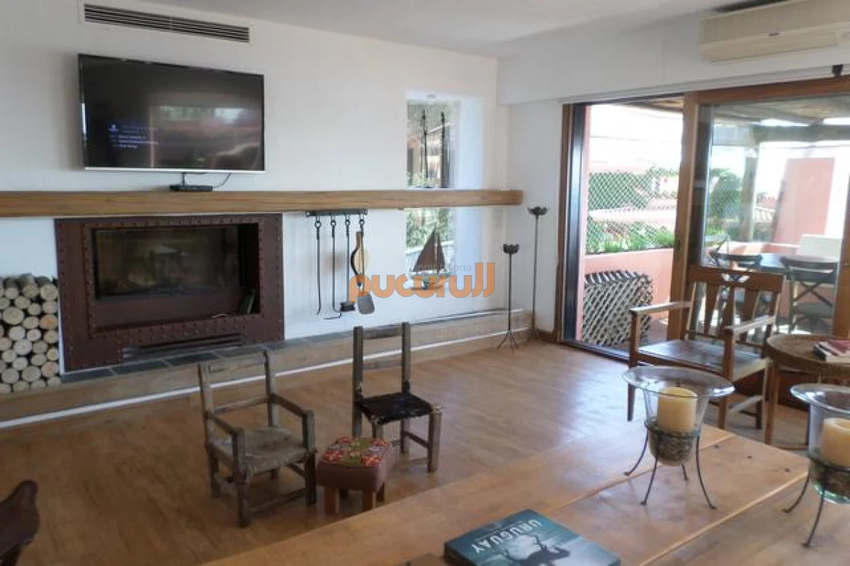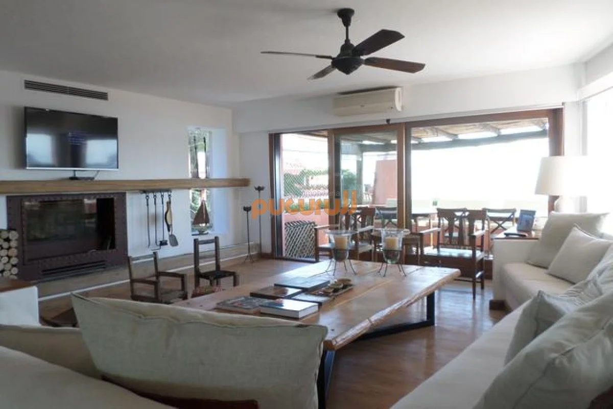 Apartamento en dos plantas: en planta alta living amplio con vista, comedor, toilette, habitación de húespedes con baño, cocina integrada bien equipada que se comunica con la terraza, lavadero con lavarropas y secarropas; habitación de servicio con baño, terraza con parrillero.