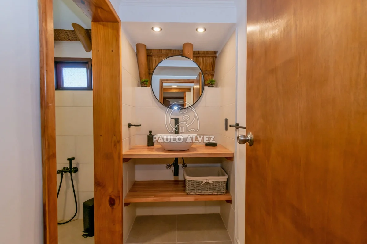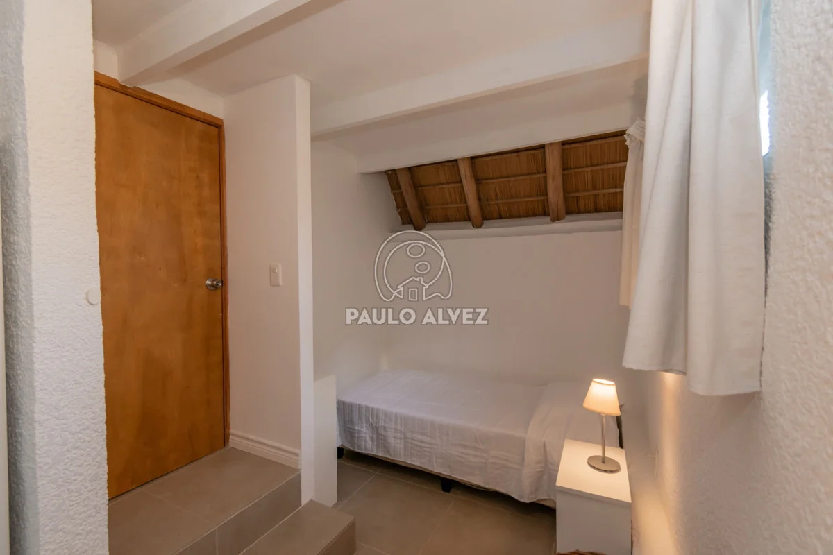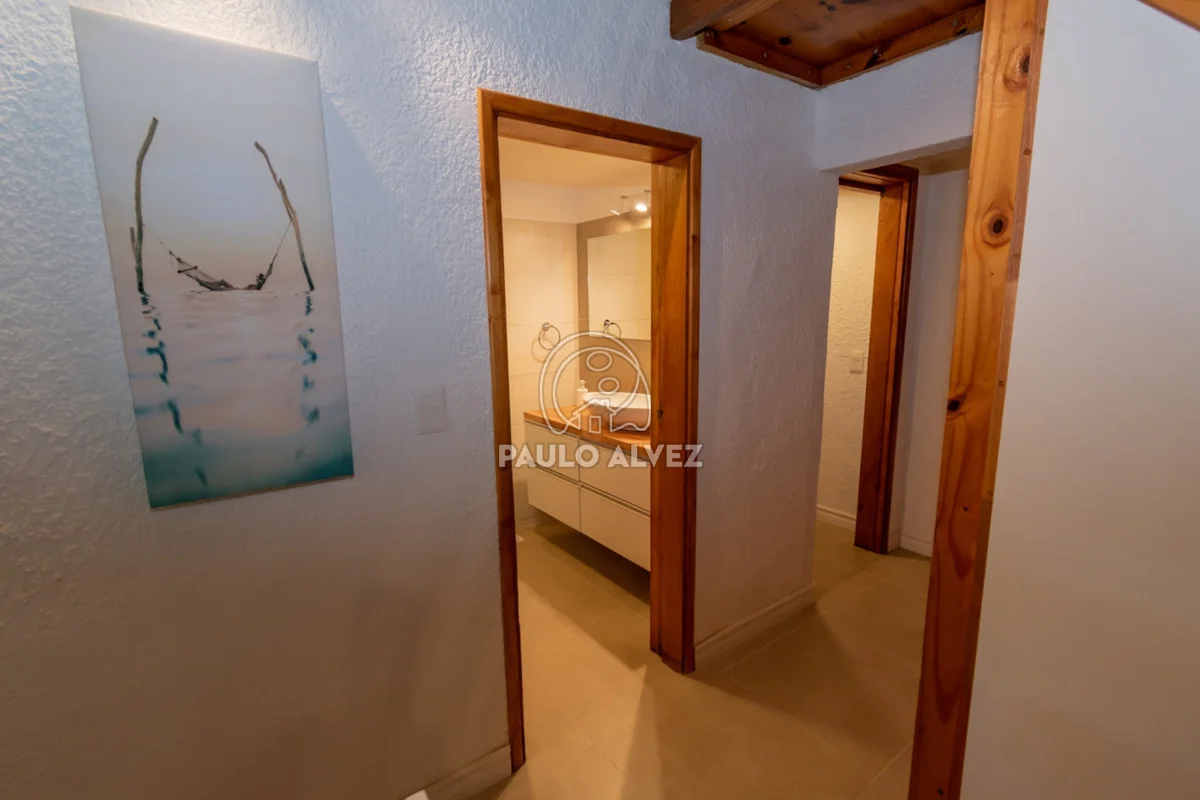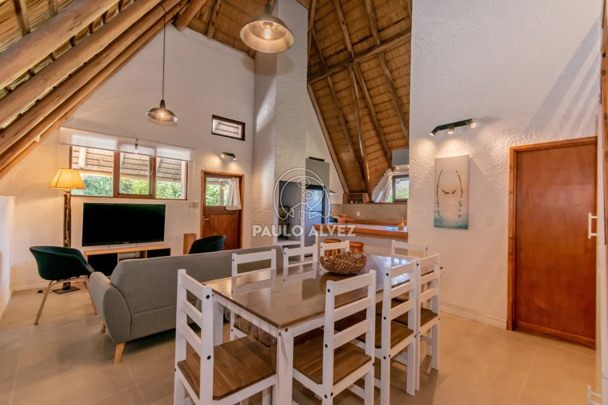 Tranquilidad y confort a tan solo 10 minutos del Centro de Pirápolis y 30 minutos de Punta del Este. Hermosa cabaña ubicada en balneario Punta Colorada, lleno de paz a 50 metros del mar donde se pueden disfrutar las más lindas puestas de Sol. Emplazada sobre terreno de 1037m², 148 metros edificados en dos plantas y 30 metros de frente con orientación Suroeste. Solida construcción doble ladrillo, techo de quincho, pisos en porcelanato y aberturas en madera. Ambientes cómodos, luminosos y funcionales distribuidos en living comedor, estufa de alto rendimiento y cocina equipada con muebles bajo mesada. Pasillo distribuidor hacia dos baños completos y dos dormitorios. Acceso por escalera a segundo nivel donde se desarrollan dormitorio principal y cuarto dormitorio. Galería cubierta con parrillero y cochera con acceso lateral. Disfrute de la vida al aire libre con un impresionante parque y piscina. Consulte por más información.