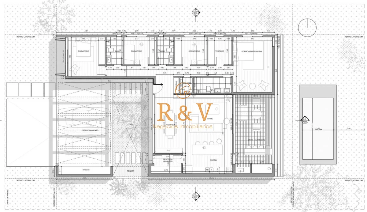 (185 m² interiores + 40 m² exteriores + 20 m² piscina)
