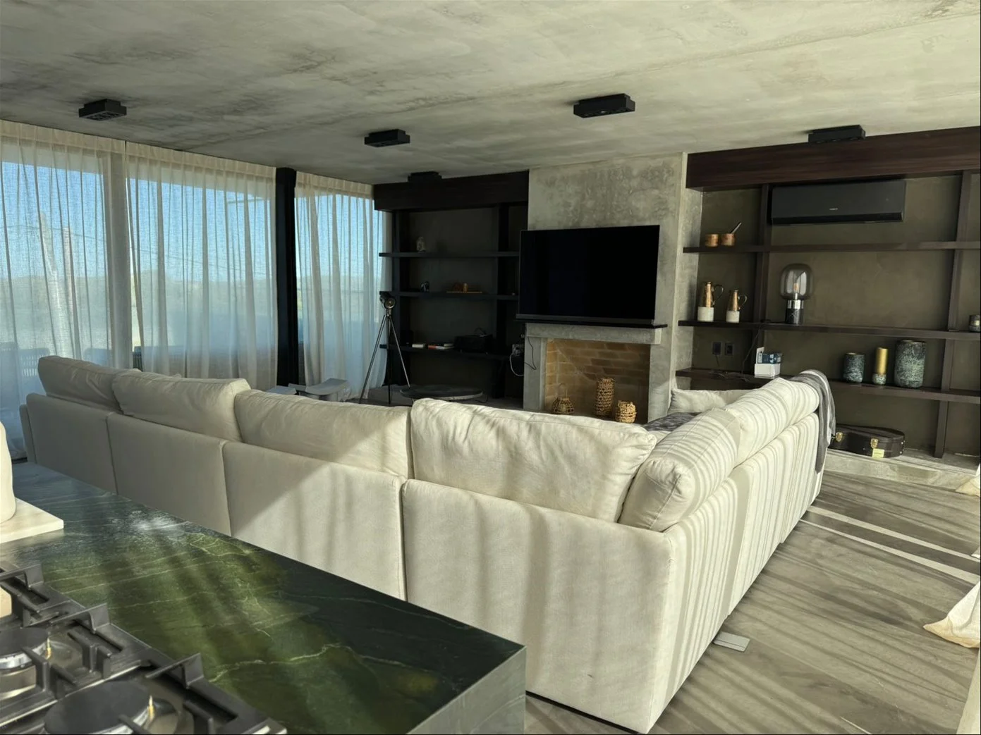 Exclusive home featuring 3 ensuite bedrooms + guest bathroom, spacious living room with integrated kitchen and wood-burning fireplace, Eurocable underfloor heating, and air conditioning throughout.