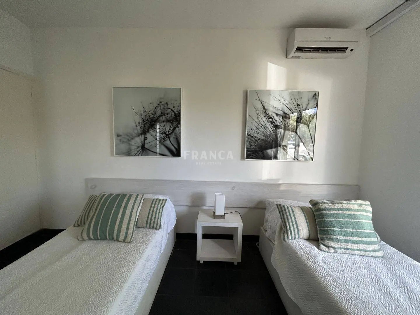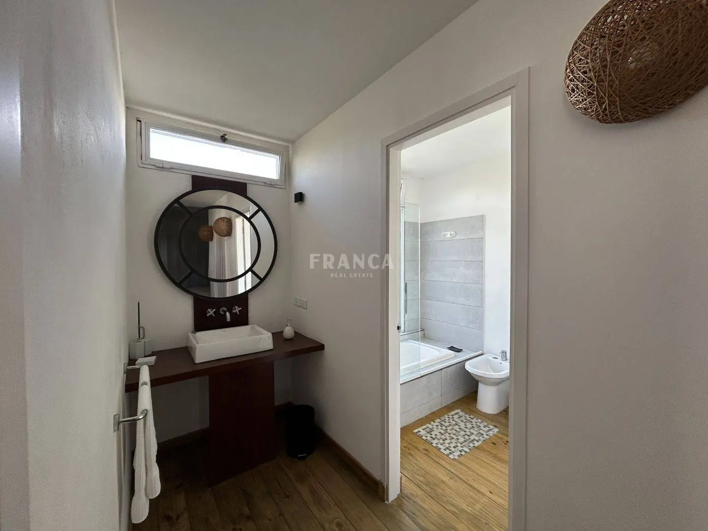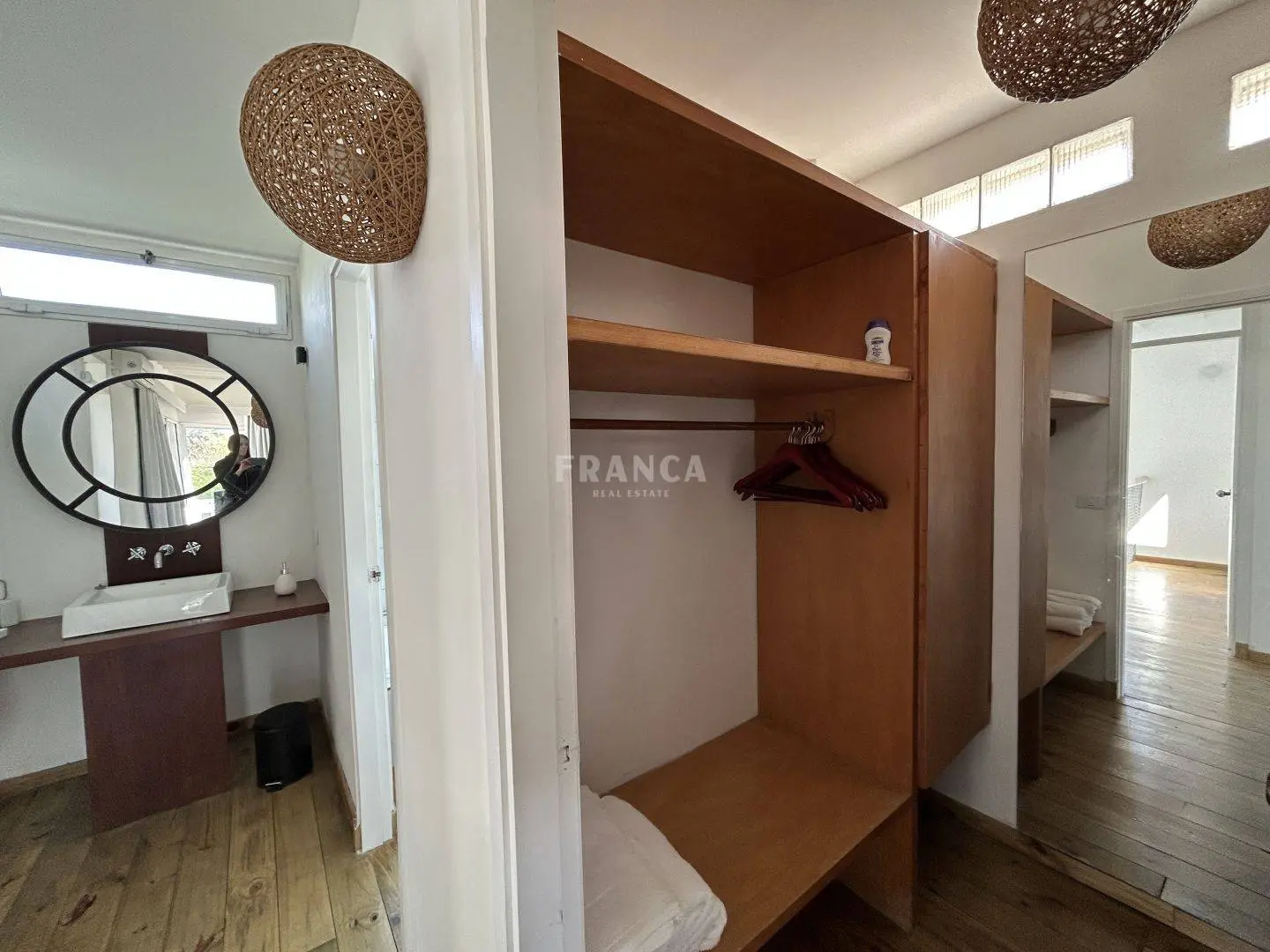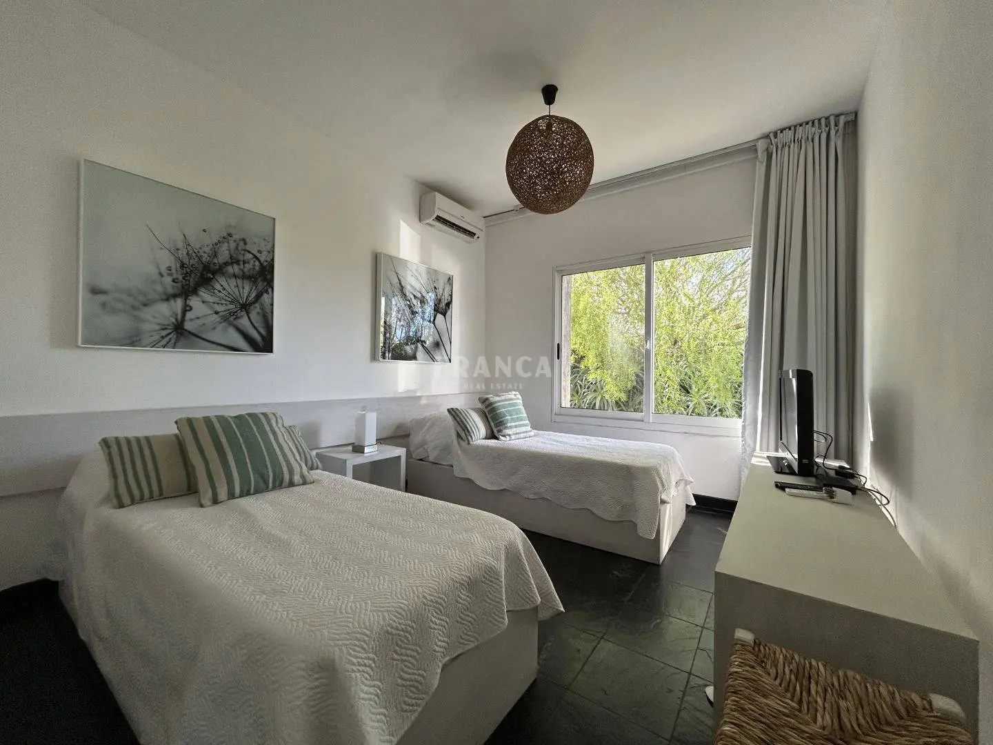 En la planta alta, la suite principal incluye un vestidor, terraza privada y una vista parcial al mar, brindando un ambiente íntimo y relajante.