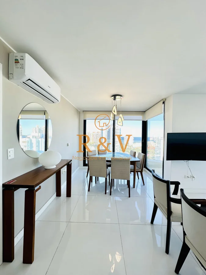 Amplia unidad de tres dormitorios en suite y toilette, principal con terraza y hermosas vistas a la playa brava. Luminoso living comedor con grandes ventanales de piso a techo, y salida a la terraza con hermosas vistas a la mansa y a la brava. Cocina bien equipada con desayunador.