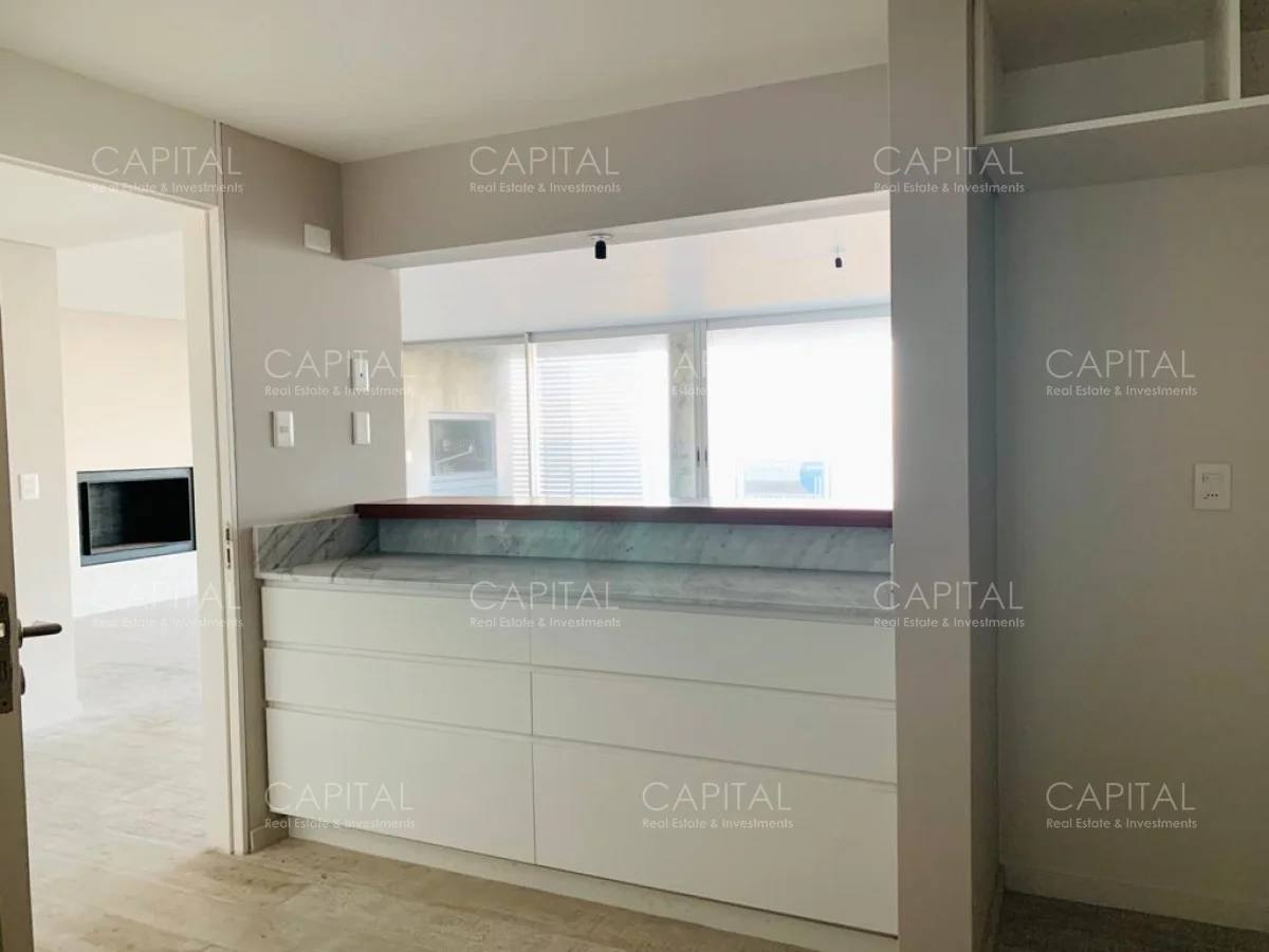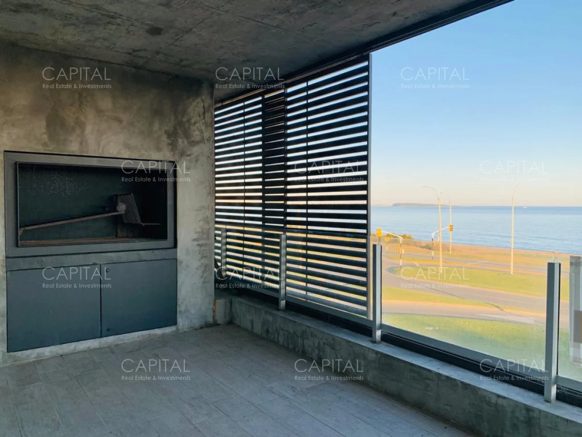 Muy buena planta con espacios amplios y luminosos. Distribuido en dos plantas; la principal dispone de gran living comedor con estufa a leña y salida al balcón con parrillero propio mirando al mar. Cocina semi integrada con barra desayunador. Dos cómodos dormitorios en suite, el principal con vestidor mirando al frente, más toilette.