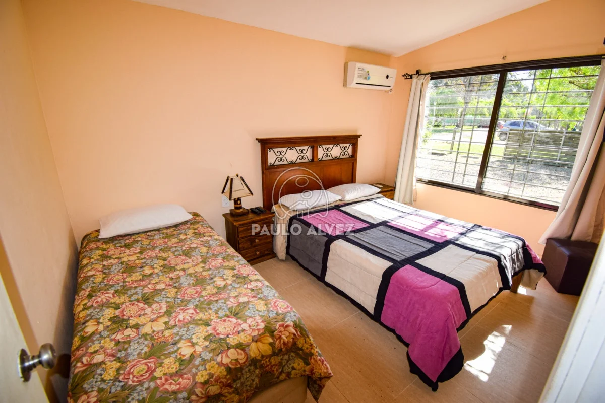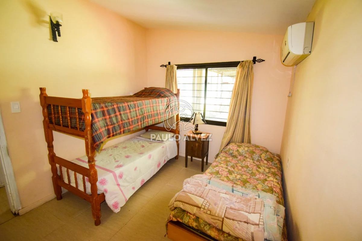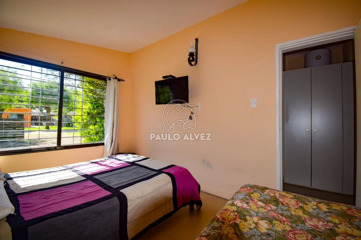 Excelente oportunidad en Barrio Los Ángeles, a solo 500 metros de la playa, donde se aprecian espectaculares atardeceres. Terreno completamente cercado de 657 m², con 101 m² construidos en sólida edificación tradicional techo de losa. Distribuida por luminoso living con estufa de alto rendimiento y amplios ventanales hacia el jardín, cocina-comedor equipada placares alto y bajo mesada. Pasillo que conduce a baño completo y dos dormitorios, el principal en suite. Al fondo nos encontramos con un hermoso jardín, arbolado, piscina cercada ofreciendo el entorno perfecto para disfrutar en familia todo el año. Además cuenta de amplia barbacoa con parrillero y baño. ¡Contáctanos para coordinar una visita y descubrir este excelente lugar!