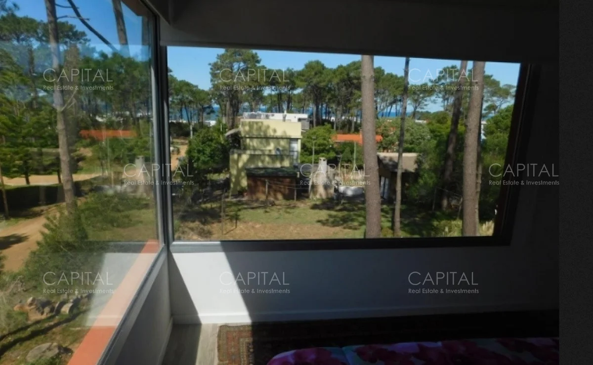 Excelente casa en venta en Montoya. Desarrollada en dos plantas con buena vistas al mar. Tres dormitorios en suite, dos en planta baja. Área social amplia y luminosa. Vistas al mar y al bosque. Pisos en porcelanato símil hormigón y pisos flotantes. Terminaciones en Tarquini.