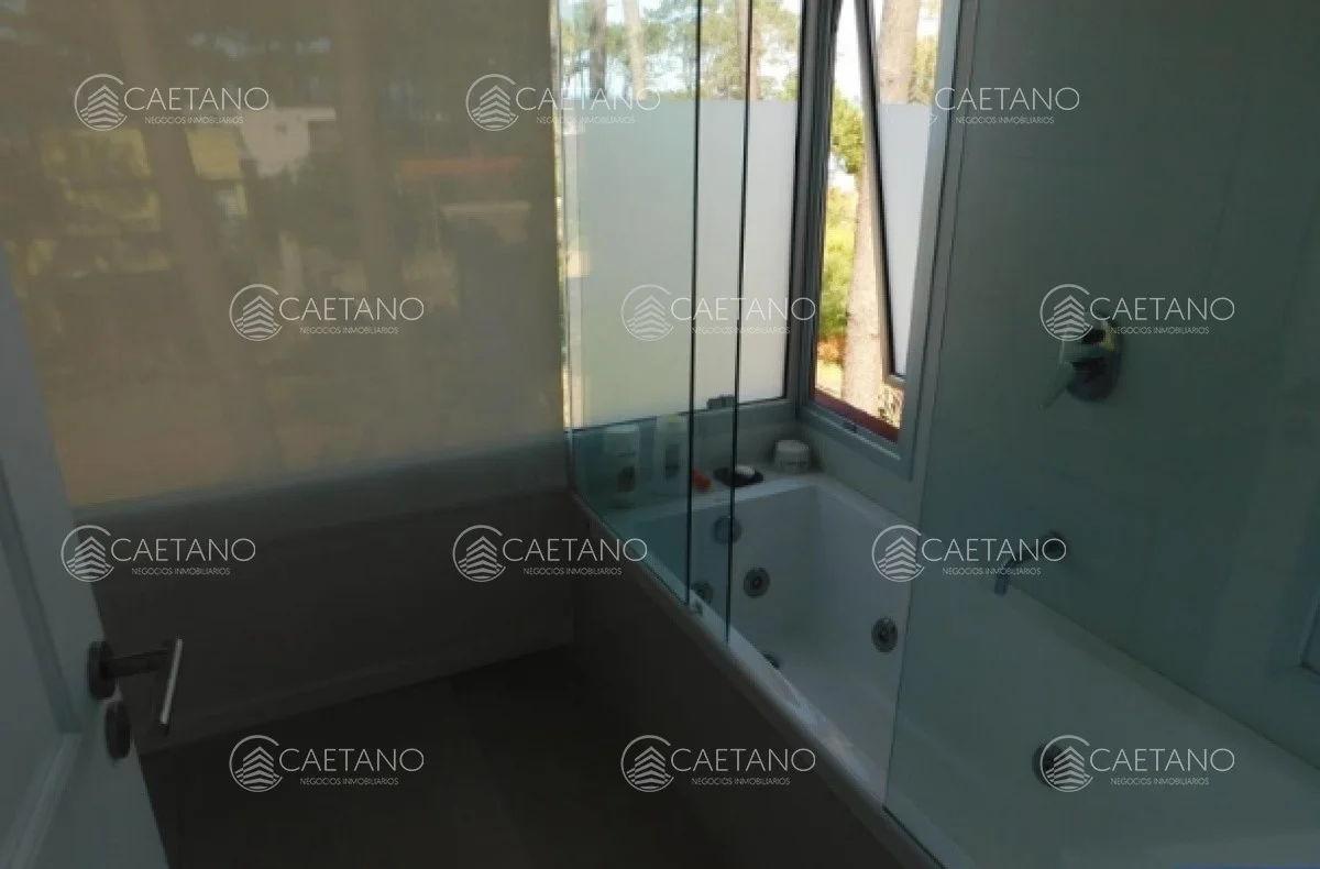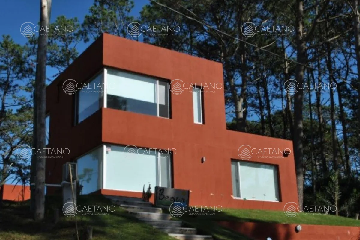 Excelente casa en venta en Montoya. Desarrollada en dos plantas con buena vistas al mar. Tres dormitorios en suite, dos en planta baja. Área social amplia y luminosa. Vistas al mar y al bosque. Pisos en porcelanato símil hormigón y pisos flotantes. Terminaciones en Tarquini.