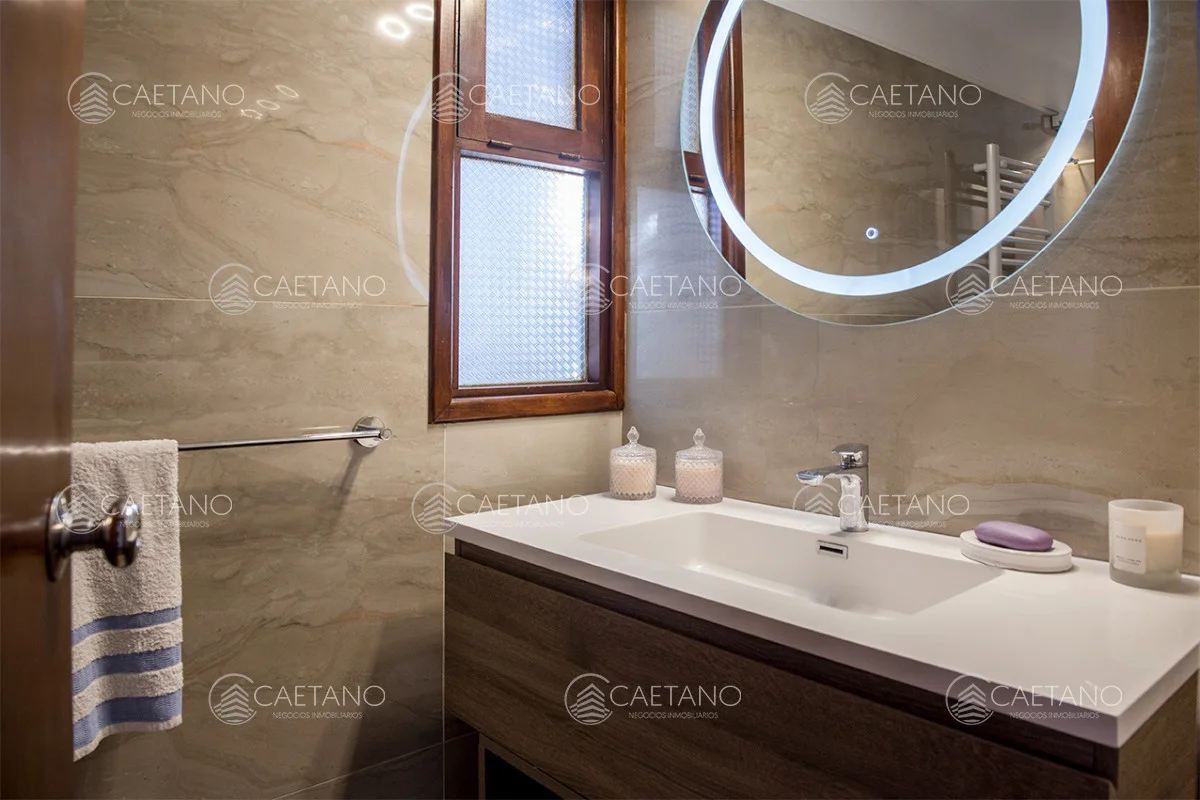 Cocina amplia definida con salida al jardín, living y comedor con estufa a leña. Todos los ambientes cuentan con aire acondicionado, persianas en los dormitorios. Esta reciclada y en muy buen estado de conservación.