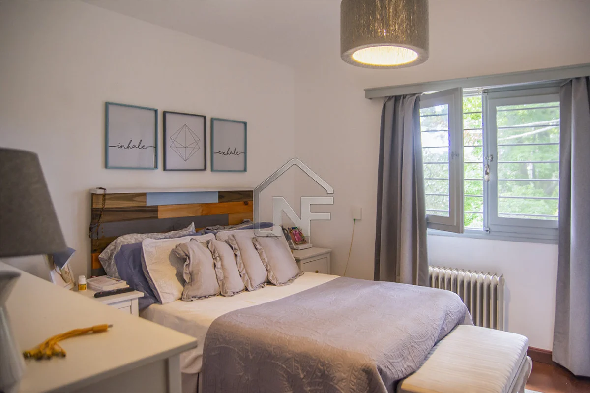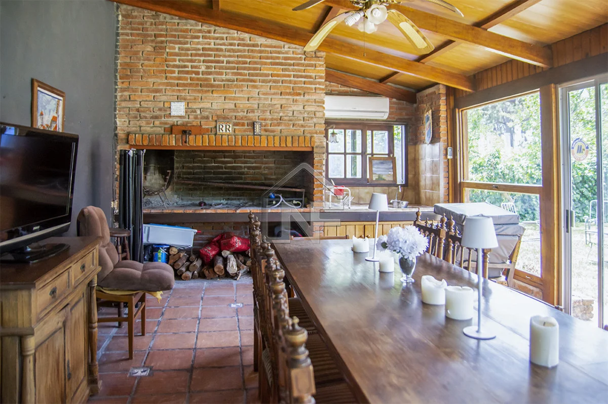 Cuenta con 3 dormitorios, 1 en suite, living amplio con estufa a leña y amplios ventanales con vista al verde. Sol todo el día