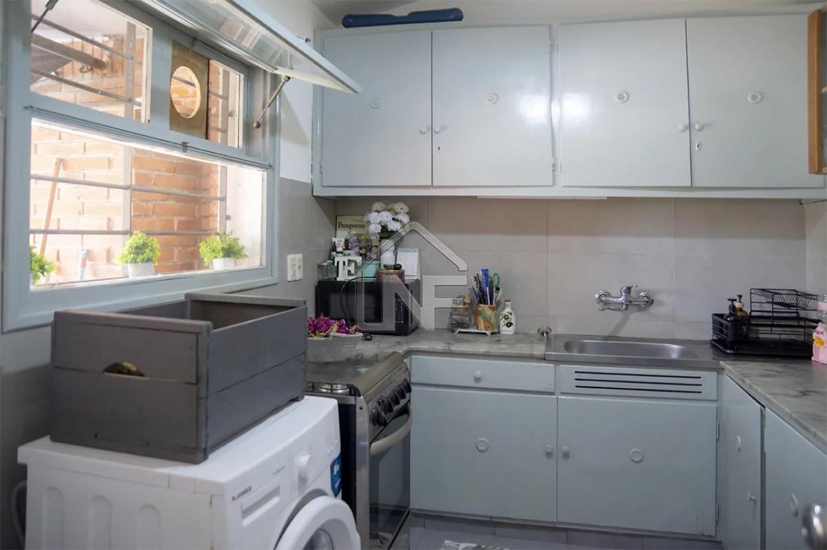 Amplia cocina con salida al jardín.