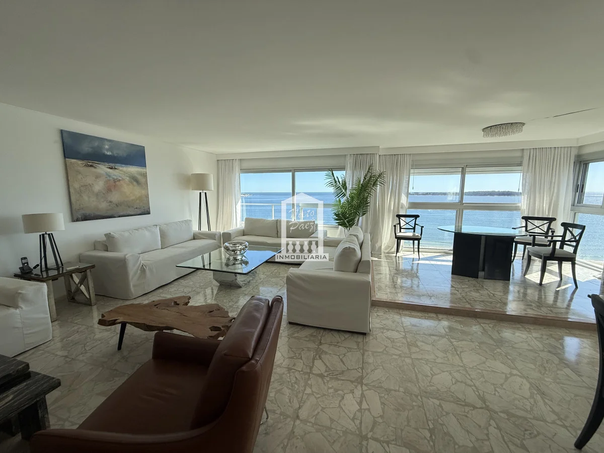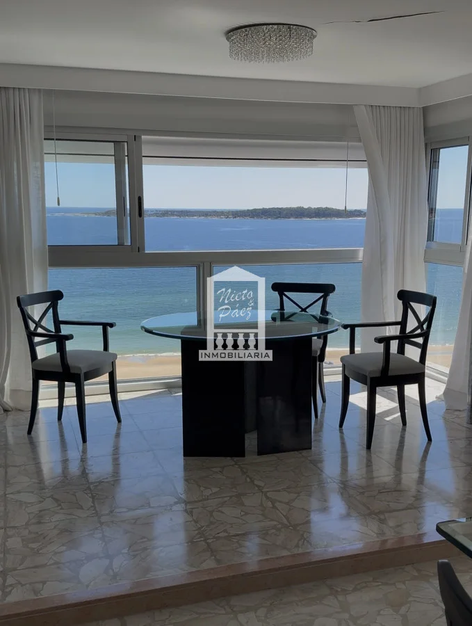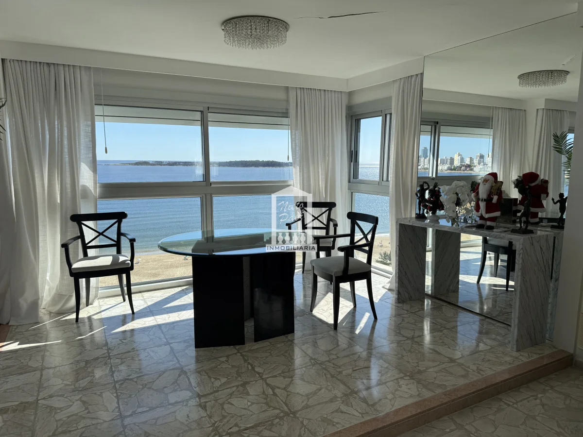 Exclusivo apartamento frente al mar en una de las ubicaciones más privilegiadas de Punta del Este, sobre primera fila de Playa Mansa. Desde sus principales ambientes se disfrutan impactantes vistas panorámicas a toda la bahía, la Isla Gorriti, el puerto y los atardeceres más emblemáticos de la ciudad, presentes durante todo el año.