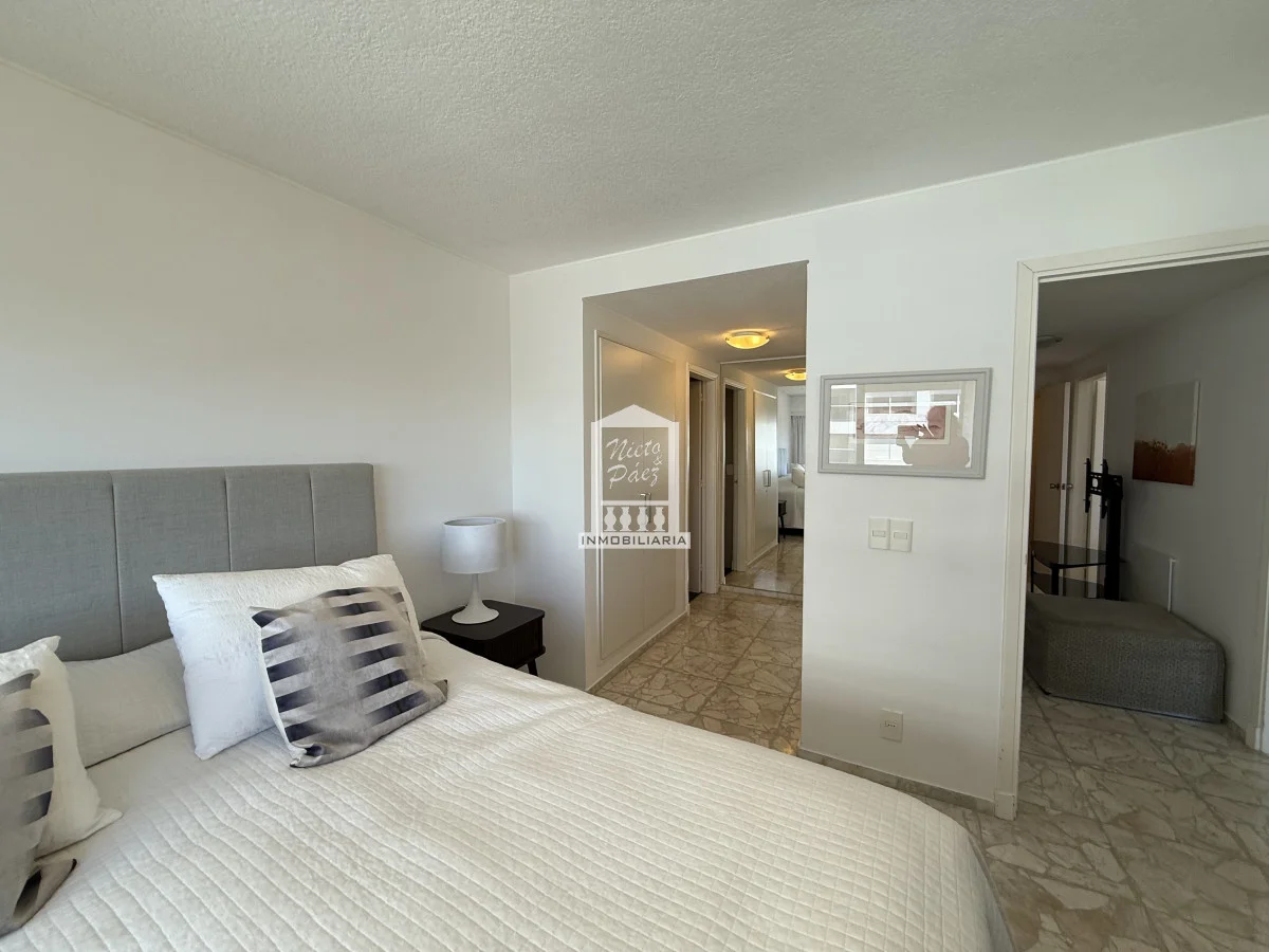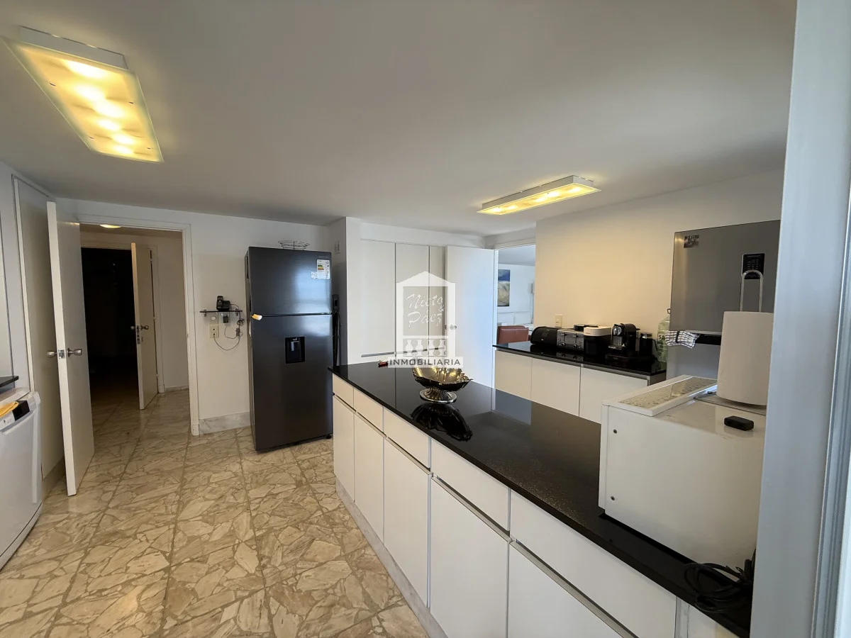 El área social ofrece un amplio y luminoso living-comedor, con grandes ventanales que enmarcan el mar y potencian la conexión con el exterior. La cocina, definida y de generosas dimensiones, resulta práctica tanto para el uso diario como para recibir.