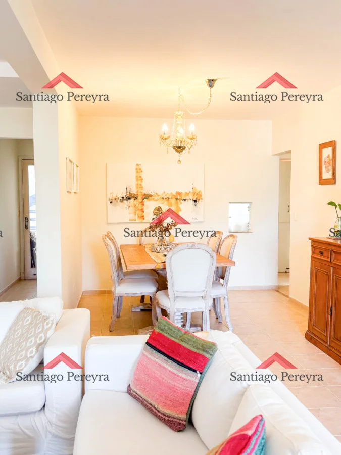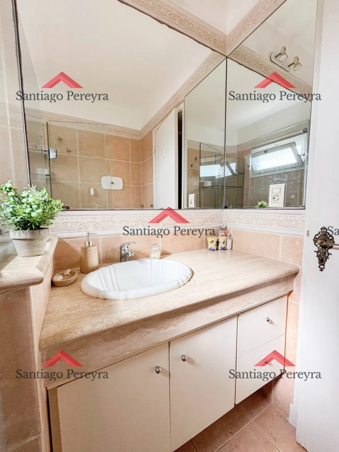 Excepcional planta ubicada en la parada 15 de la mansa, Punta del Este, Uruguay. Zona residencial a una cuadra de la playa por lo que es una oportunidad ideal tanto para vacaciones de familias numerosas o para vivienda permanente. La unidad de encuentra en un edificio de dos plantas, característico de Punta del Este. Es un segundo piso por escalera y se distribuye en 145 m2 más 312 m2 de azotea transitable de uso exclusivo. El apartamento tiene tres orientaciones logrando que todos los ambientes tengan ventana, ventilación y muy buena luminosidad. Ingreso principal hacia el living. El mismo cuenta con estufa a leña, doble terraza y comedor principal. Los dormitorios se distribuyen alrededor del living. Son cuatro habitaciones en total todas con buenos placares y tres de ellas en suite. Además, otro baño completo más. Todos los baños fueron actualizados y cuentan con repisas en blindex. La segunda entrada es hacia la cocina definida que dispone de comedor diario, parrillero y gran ventanal hacia el fondo verde del edificio y al mar. En segunda planta se encuentra el sector de lavadero, un baño social y salida a la azotea. Allí se puede disfrutar de una pérgola con cerramiento y vista panorámica del lugar y del atardecer. Allí además tiene dos boxes y otro más en planta baja muy práctico para los objetos de la playa o las bicicletas. La unidad cuenta de 3 garajes fijos. Se destaca que todas las aberturas son de DVH (doble vidrio hermético) y que dispone de aire acondicionado en todos los dormitorios y en el living Por su parte el edificio tiene un fondo verde muy agradable con barbacoa y parrillero de uso común. Además, portero con vivienda. Posible permuta por casa de 4 dormitorios o más, 3 baños o más, fondo verde y parrillero