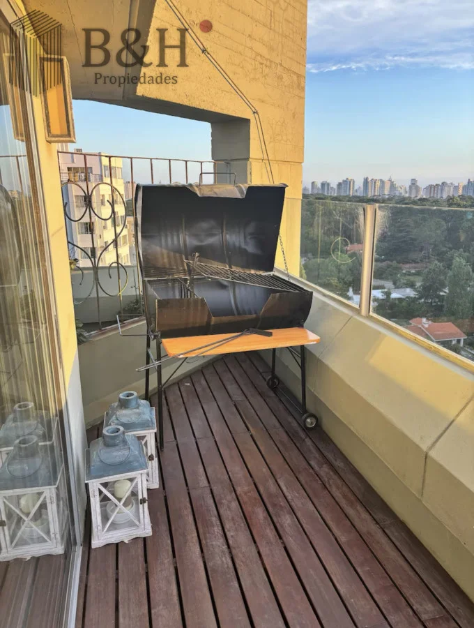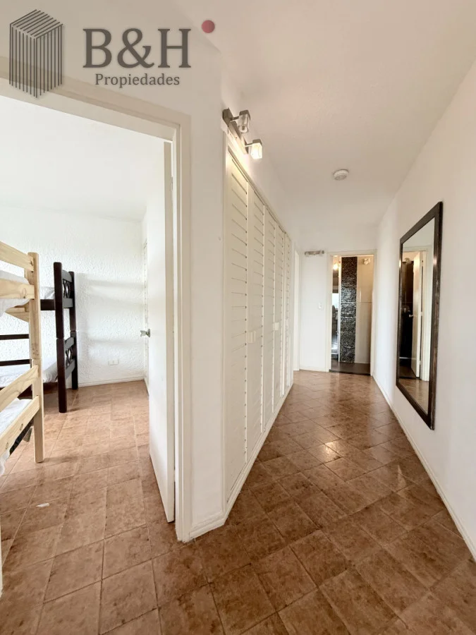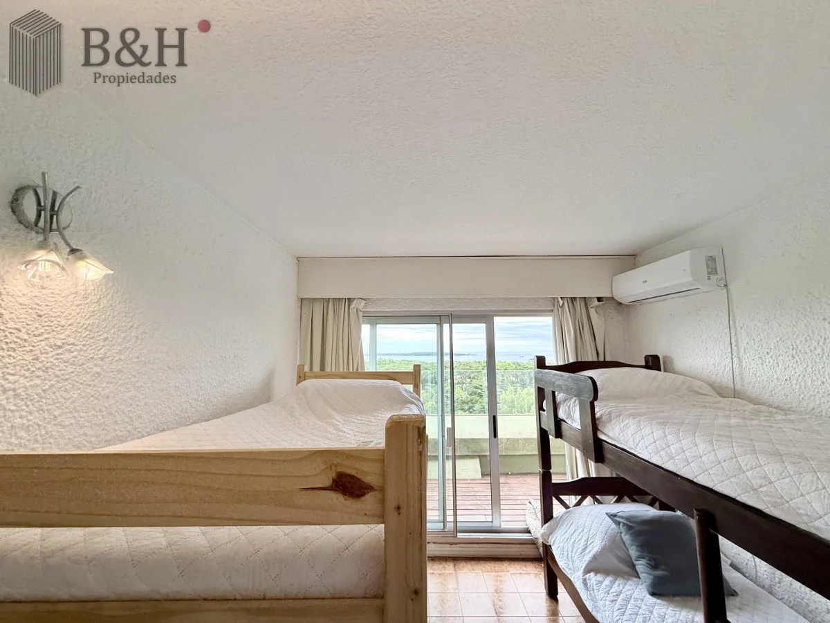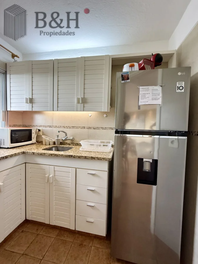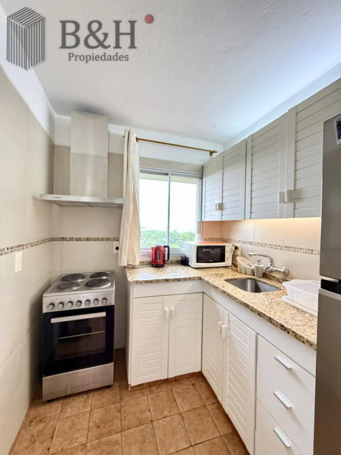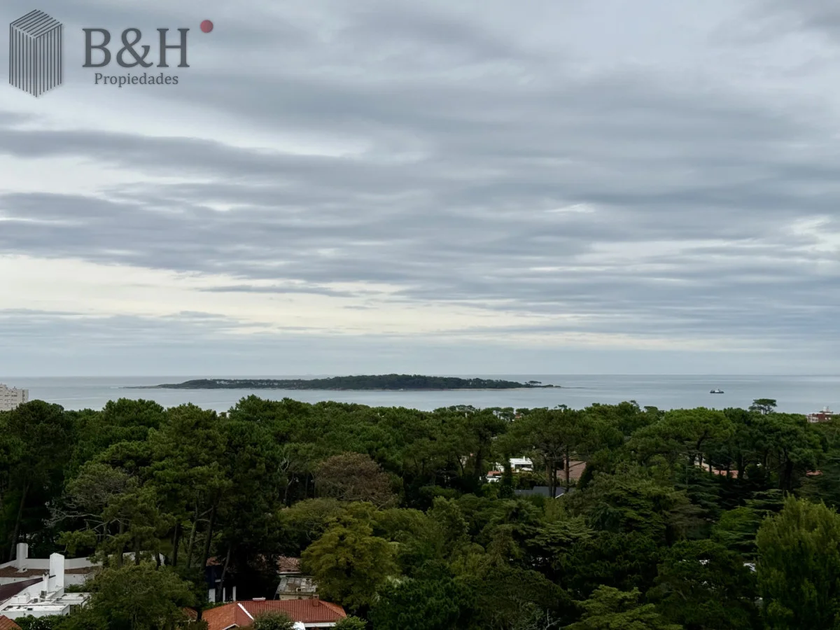 Amplio living-comedor con salida al balcón perimetral, cocina independiente y parrillero medio tanque con vista al mar.
