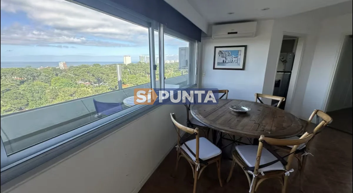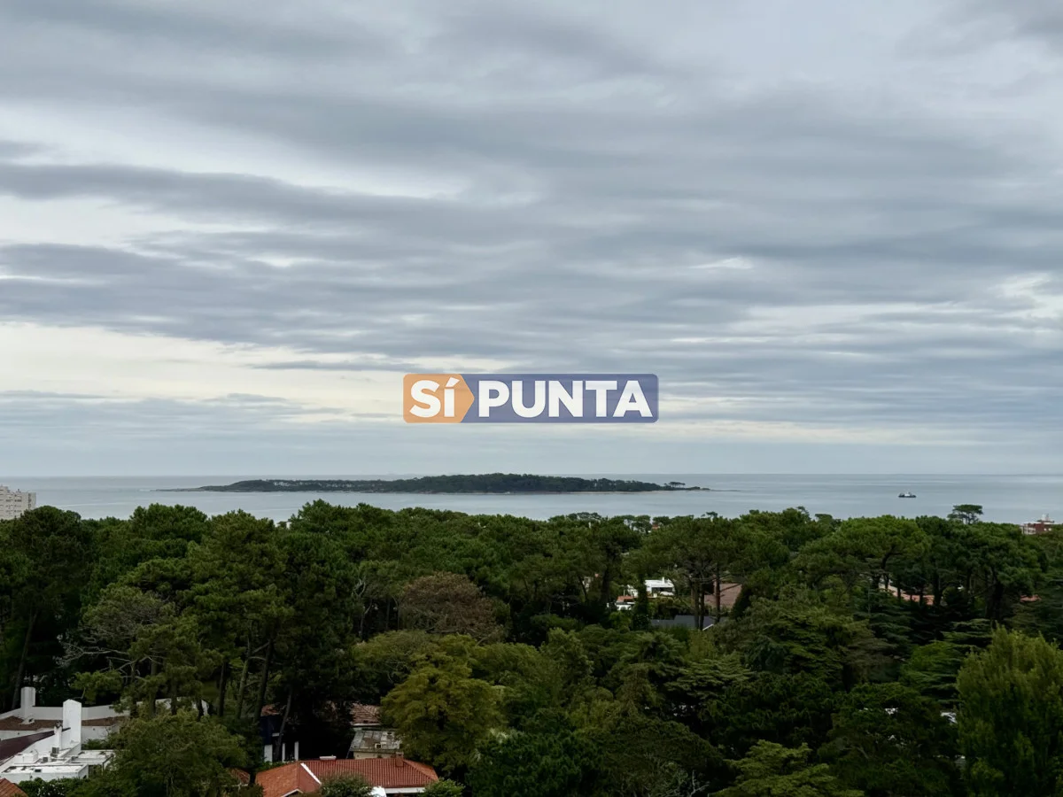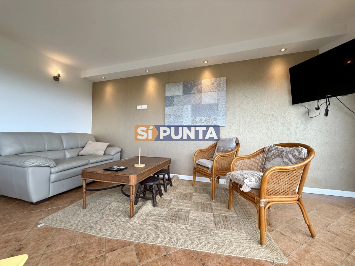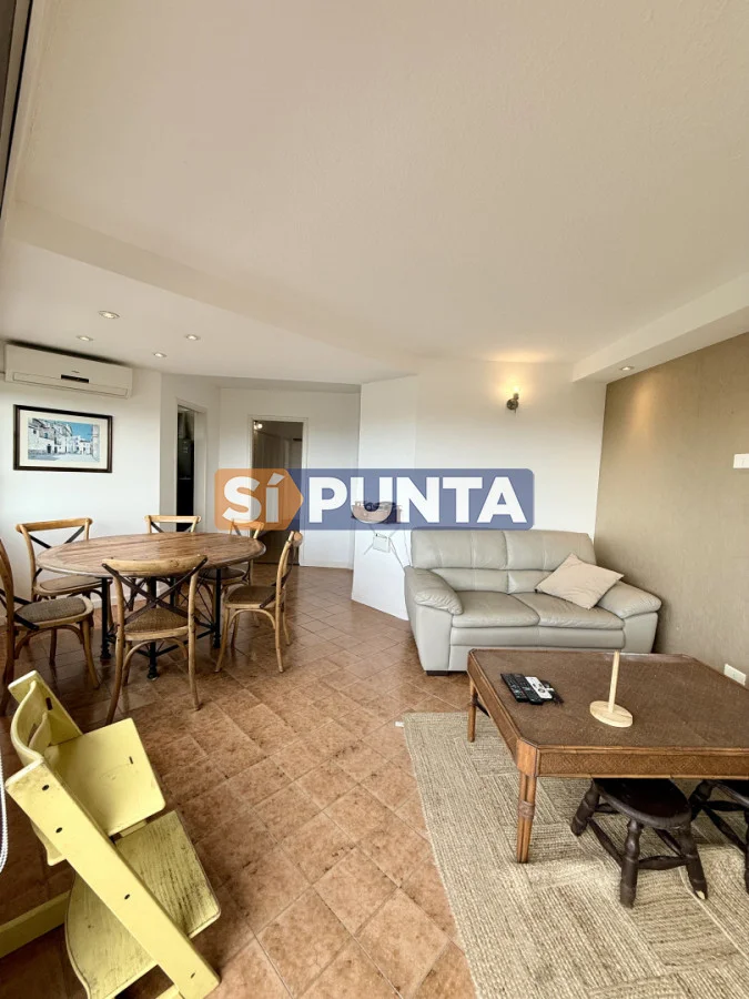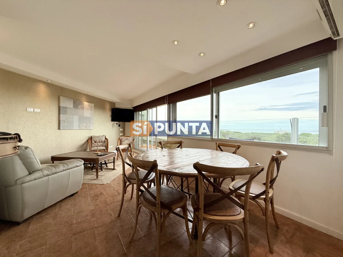 Amplio living-comedor con salida al balcón perimetral, cocina independiente y parrillero medio tanque con vista al mar.