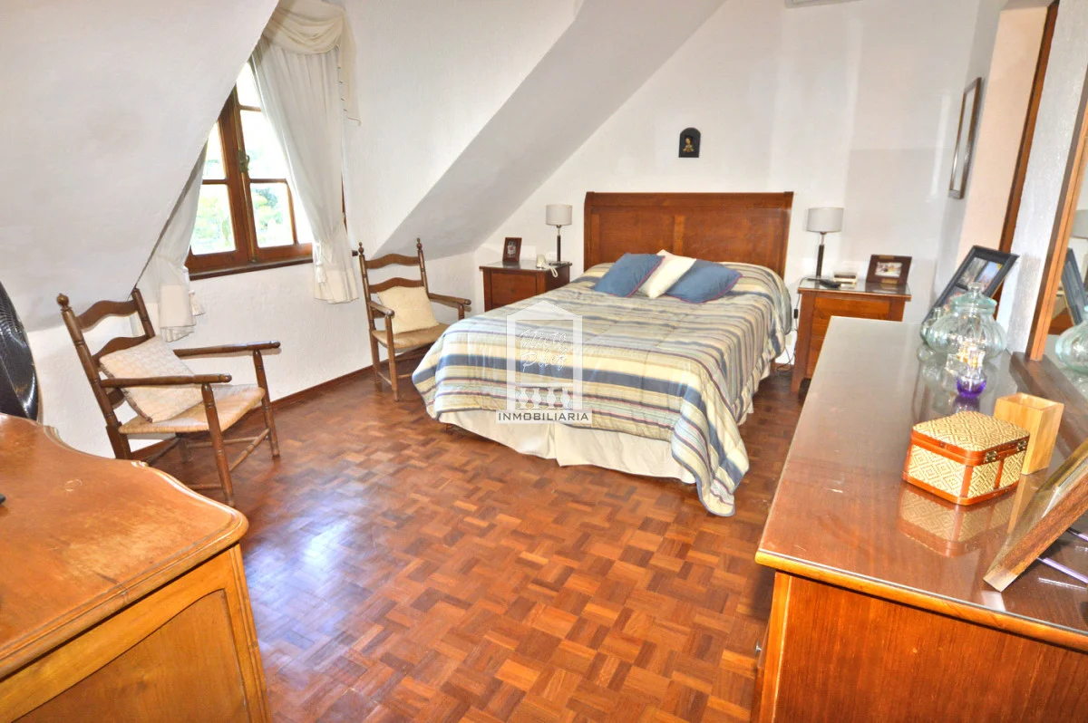 Descubre esta propiedad de diseño clásico y atemporal, ideal para quienes buscan elegancia y confort. La casa cuenta con una encantadora fachada de ladrillo visto y un hermoso techo de tejas oscuras, complementado con ventanales en madera que brindan gran luminosidad.