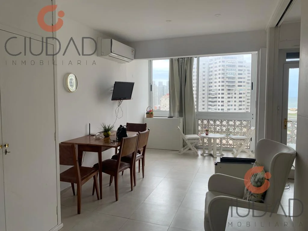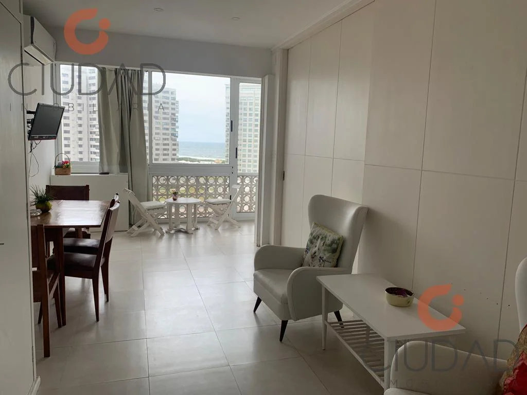 OPORTUNIDAD DE INVERSIÓN, apartamento con cochera. Gran living comedor (opción de más huéspedes), un dormitorio con placares, terraza cerrada con vista a la Playa Brava. Cocina y baño completos.