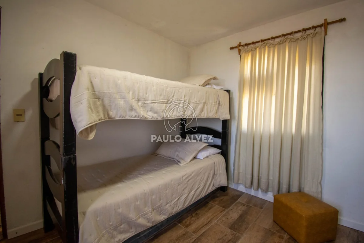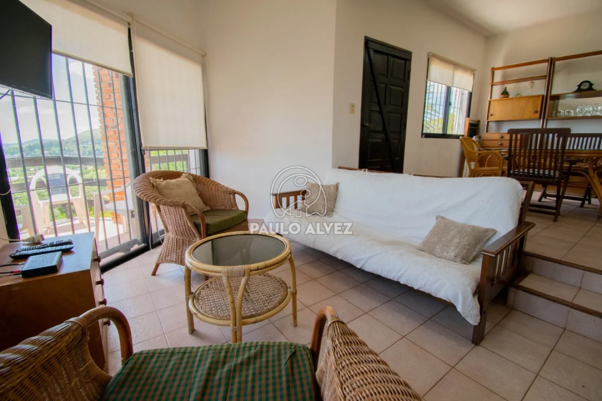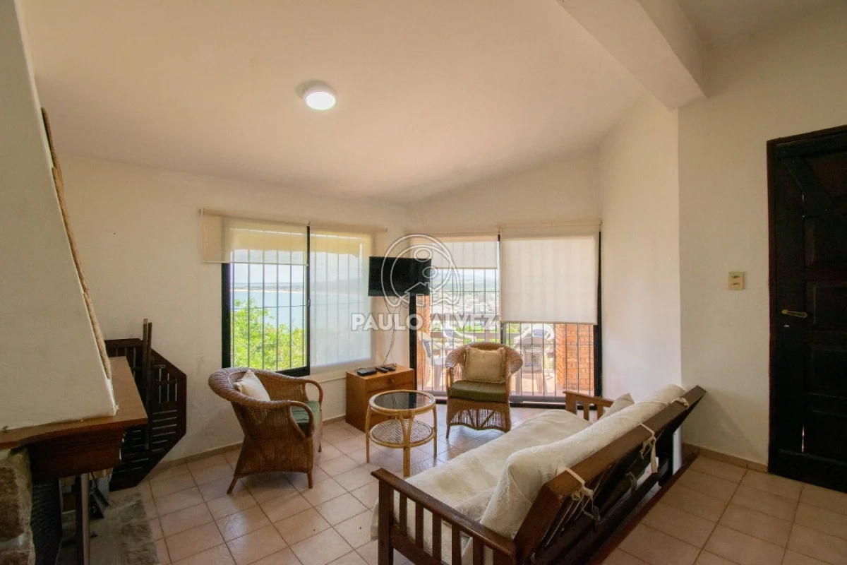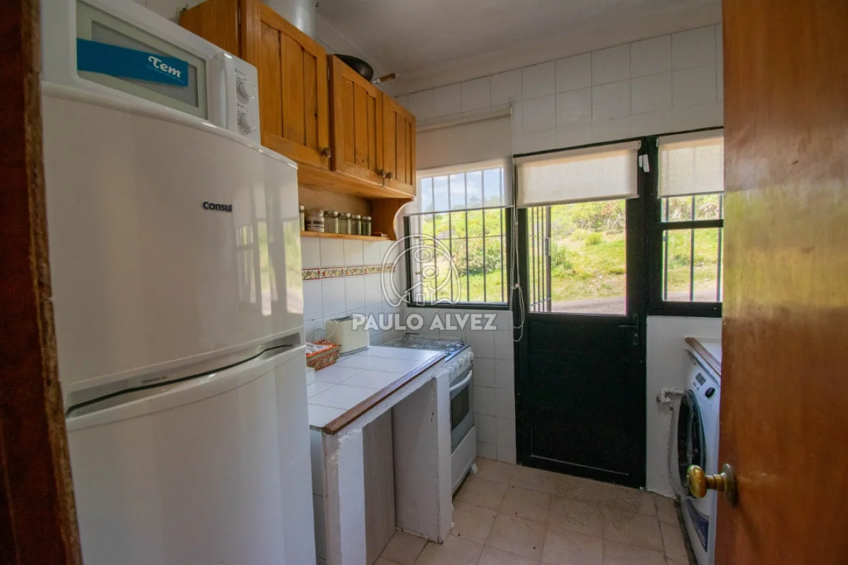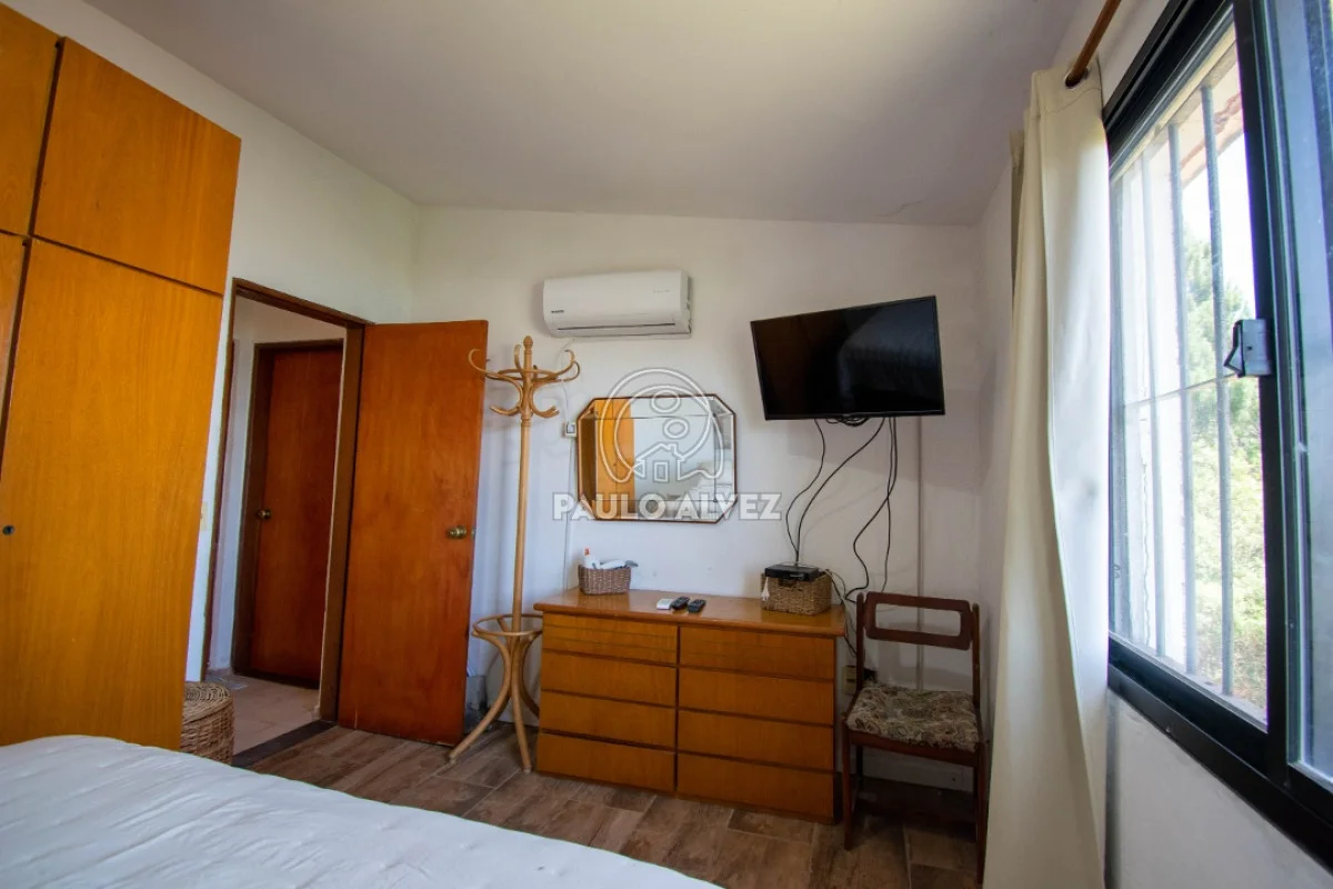 Excelente propiedad ubicada en la falda del Cerro San Antonio con vista panorámica al mar. Emplazada sobre predio en esquina de 497m², edificados 128m². Construcción tradicional, doble pared de ladrillo y techo de losa. Distribuida por living- comedor con estufa a la leña y vista a la ciudad de Piriápolis. Cocina definida, baño completo y dos dormitorios, el principal con aire acondicionado. Parrillero y amplio jardín. Consulte por más información.