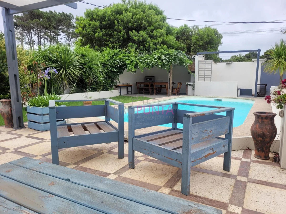 La propiedad cuenta con un área al frente para el descanso familiar con vista a la piscina.