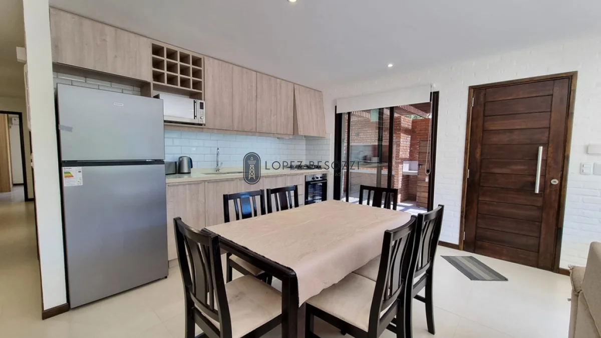 Distribución en un solo nivel contando con amplio living-comedor la cual contará con estufa a leña de alto rendimiento; cocina integrada con muebles a medida (aéreos y bajo mesadas); pasillo de distribución hacia los 3 dormitorios (con placares empotrados a medida) y 2 baños completos