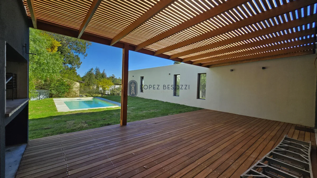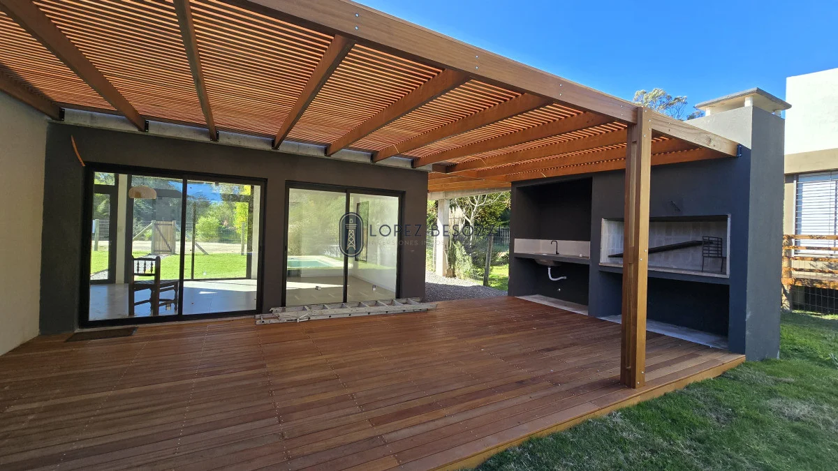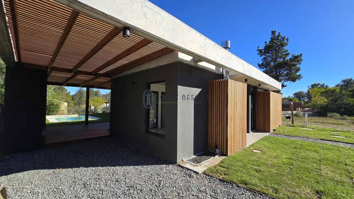 Construcción tradicional de finas terminaciones y una perfecta aislación térmica; muros en bloque celular con revestimiento en sectores de fachada en madera dura; pisos en porcelanato; aberturas en aluminio con vidrios DVH; techo de hormigón plano (tri-capa) el cual esta aislado con poliuretano expandido; otra capa de hormigón y membrana liquida. Previsión para equipos de aire acondicionado en todos los ambientes; cerramiento perimetral con malla electro soldada y portones en madera.