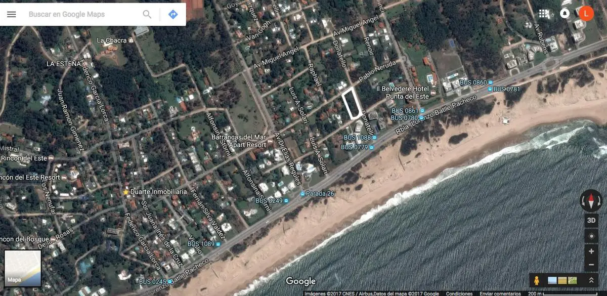 En la parada 28 de la brava manzana 1377 que comprende los padrones 10346/10347 y 10348 con un total de 4224 m2 tiene un frente de 175 m2Subzona 4.1.2FOS 550FOT 80· Terreno en altura con vista al mar, y salida a 3 calles.· Cuenta con desarrollos en primera fila 45 grados, donde hay vista muy abierta.