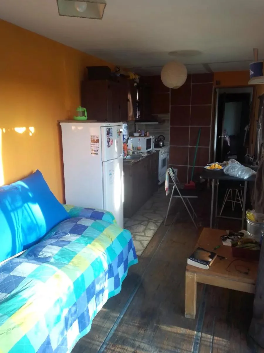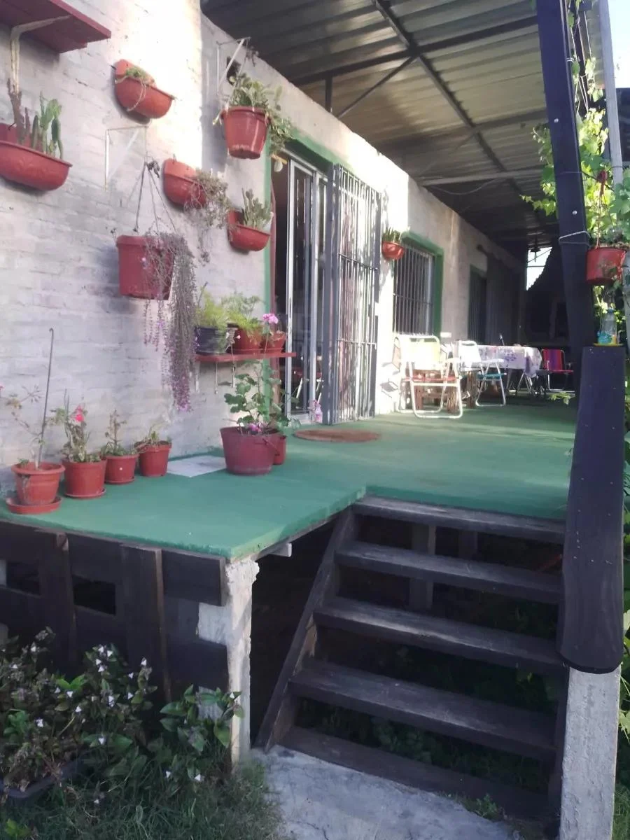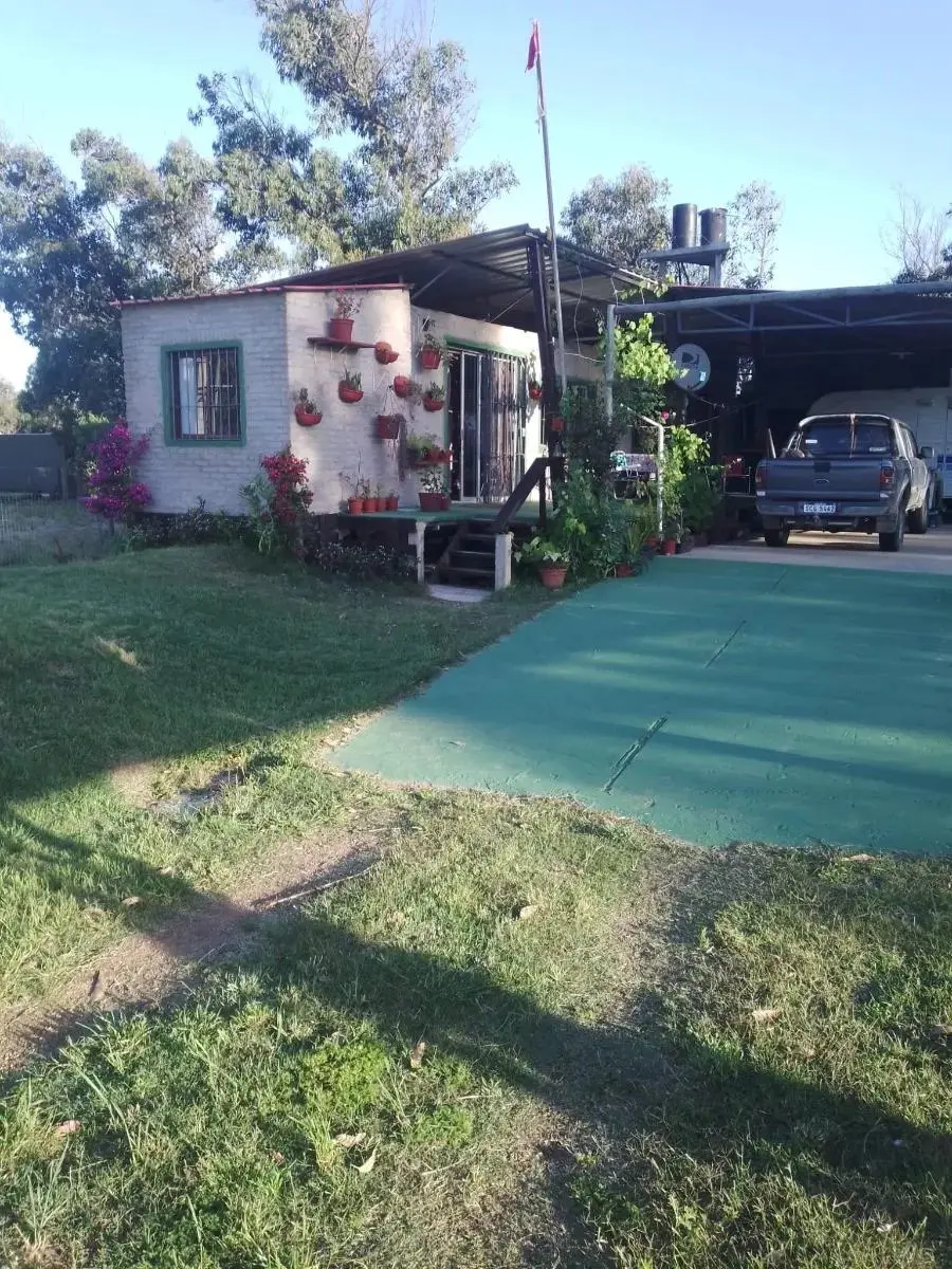 Casa contenedor forrado en ladrillo por fuera y yeso por dentro. Sobretecho que cubre una amplia terraza, 2 dormitorios, parrillero, patio y cochera para dos autos. Patio cerrado con portón al frente.