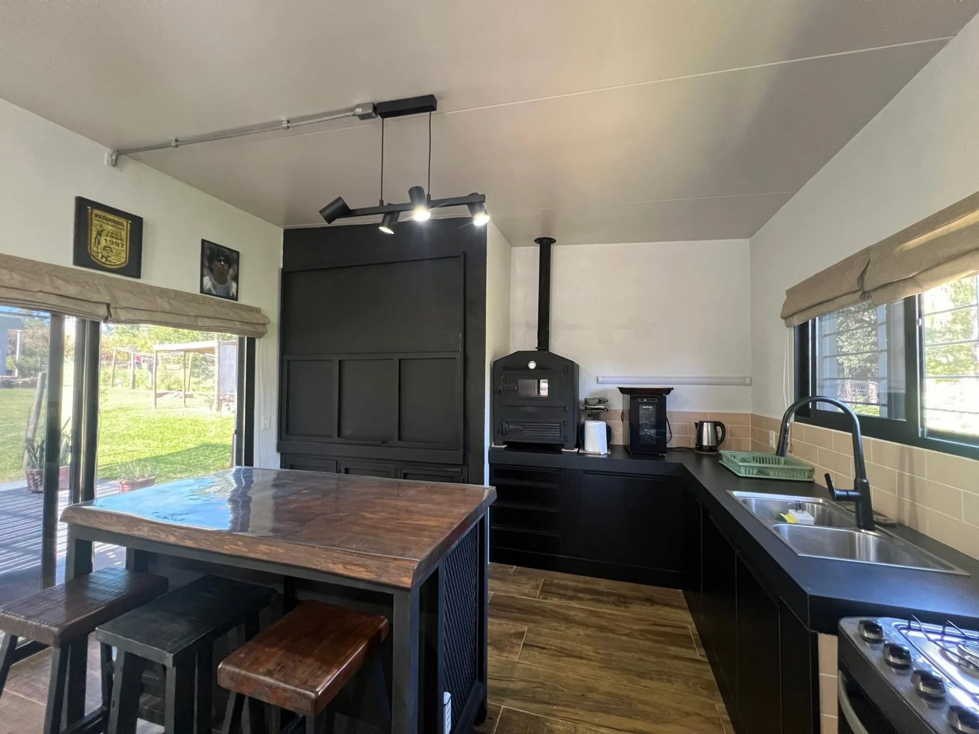 Estufa de alto rendimiento, con sistema que distribuye el calor hacia el baño y los dormitorios, brindando mayor confort en invierno