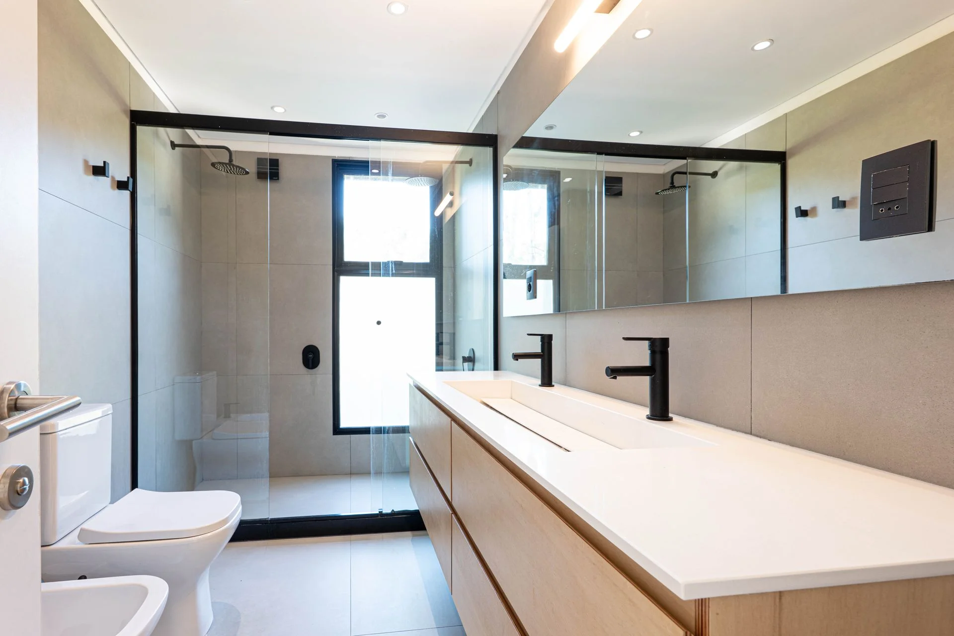 2 dormitorios uno de ellos en suite, y en la panta de arriba cuenta con el dormitorio principal, con baño en suite con 2 duchas y un vestidor.