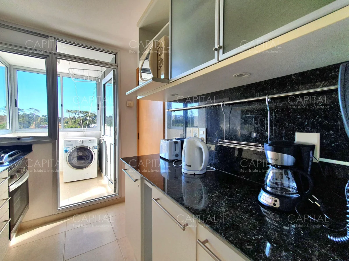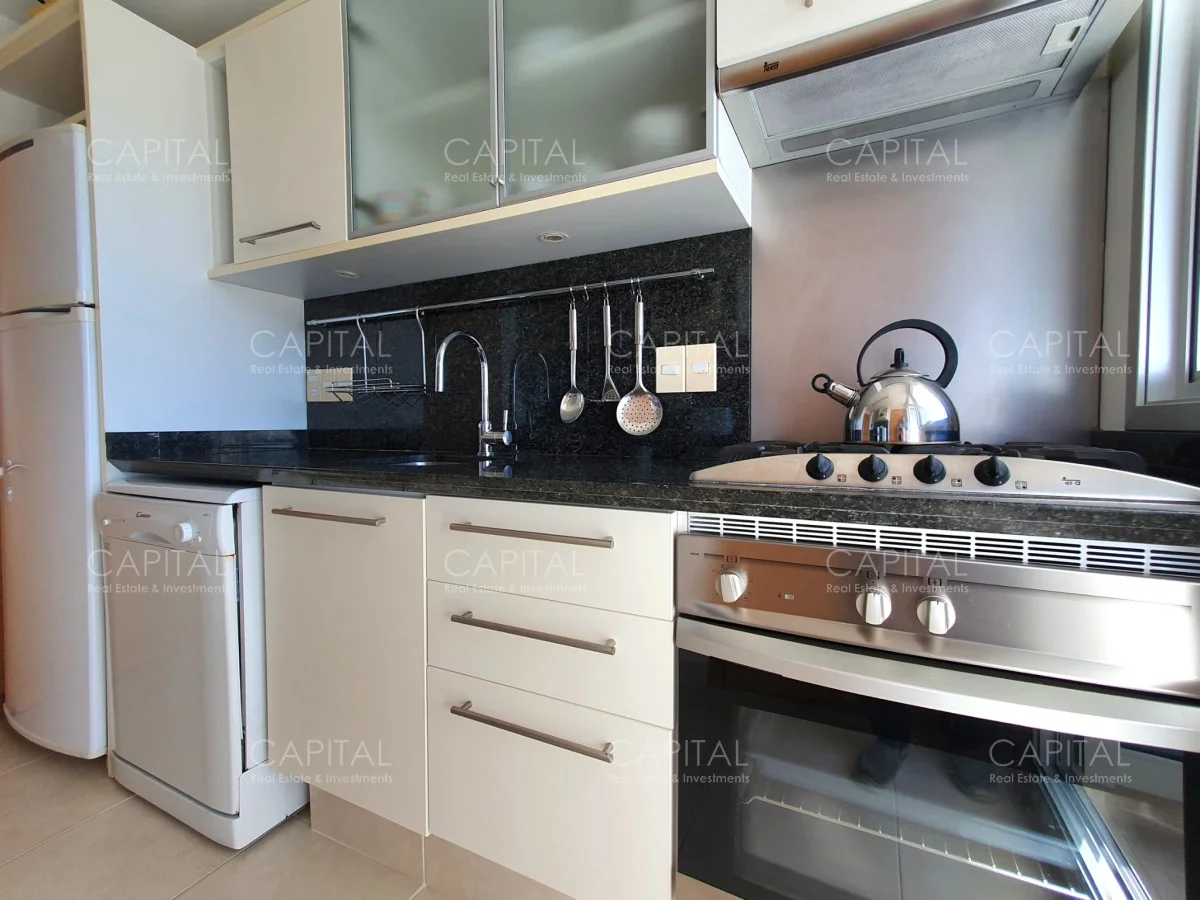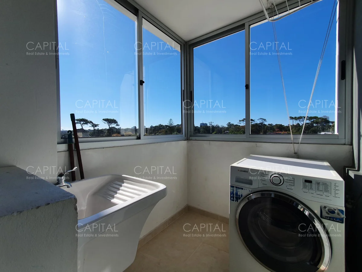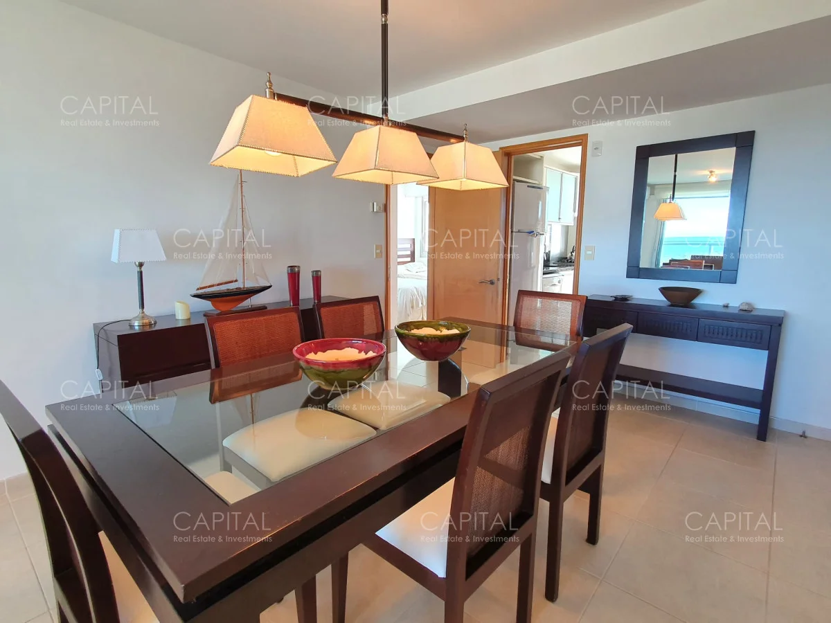 Departamento dos Dormitorios dos baños uno en suite con hidromasaje el otro con box de ducha, living comedor amplio con salida a balcón terraza con vista al mar Playa Mansa, cocina definida anafe a gas, campana, horno eléctrico, lavavajillas, microondas, y salida a lavadero cerrado con lavarropas, tender y pileta. Dormitorio principal con vista al frente, dormitorio secundario con vista agradable al contrafuerte, ambos con amplios placares. Calefacción por losa radiante sectorizada y aire acondicionado en living y dormitorio principal.