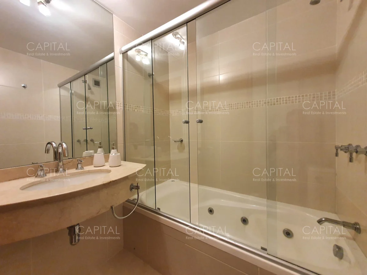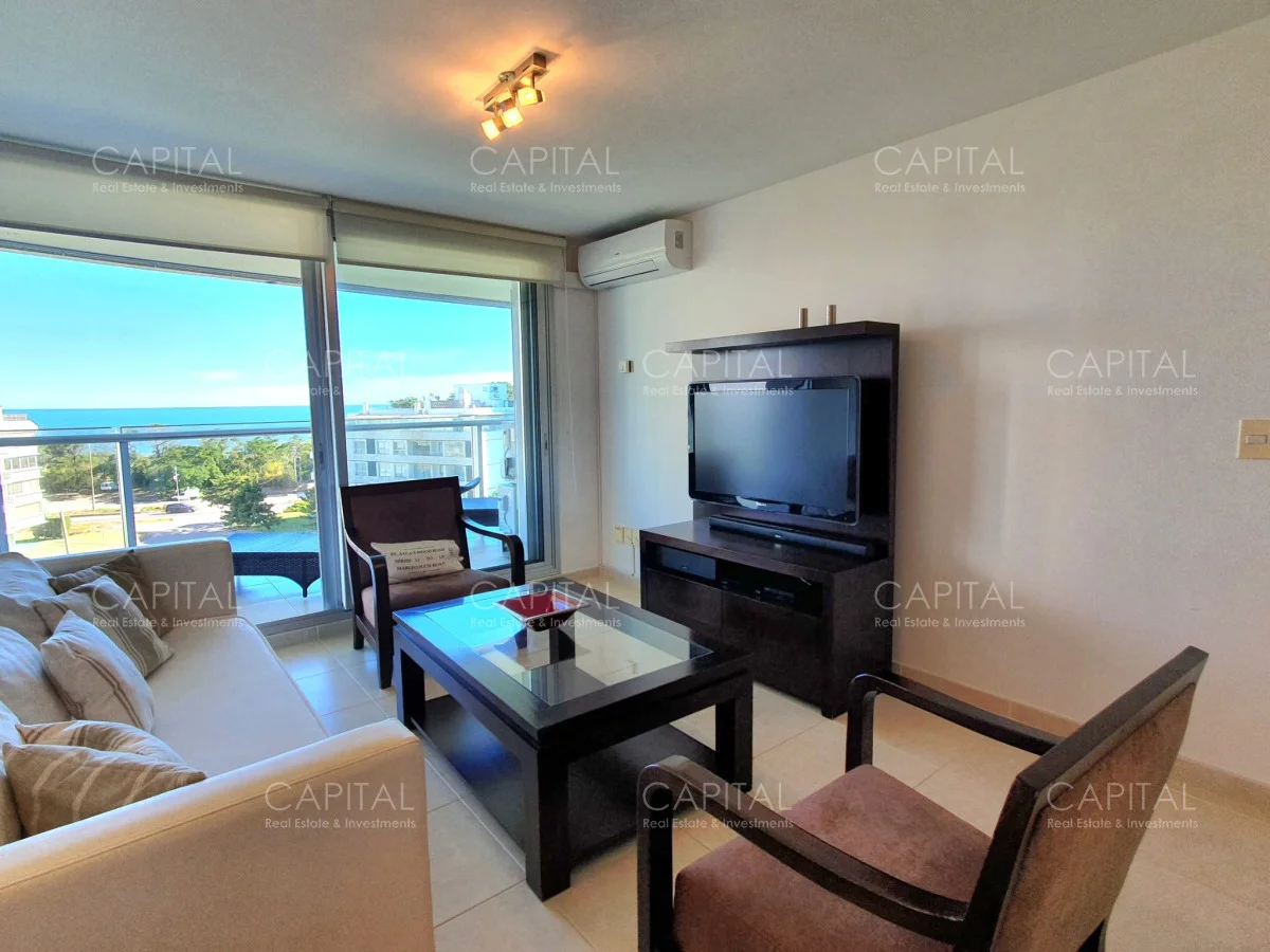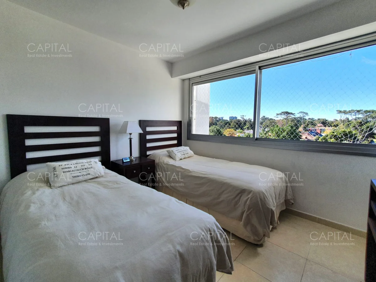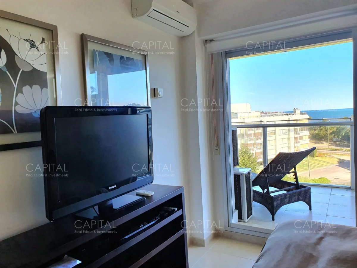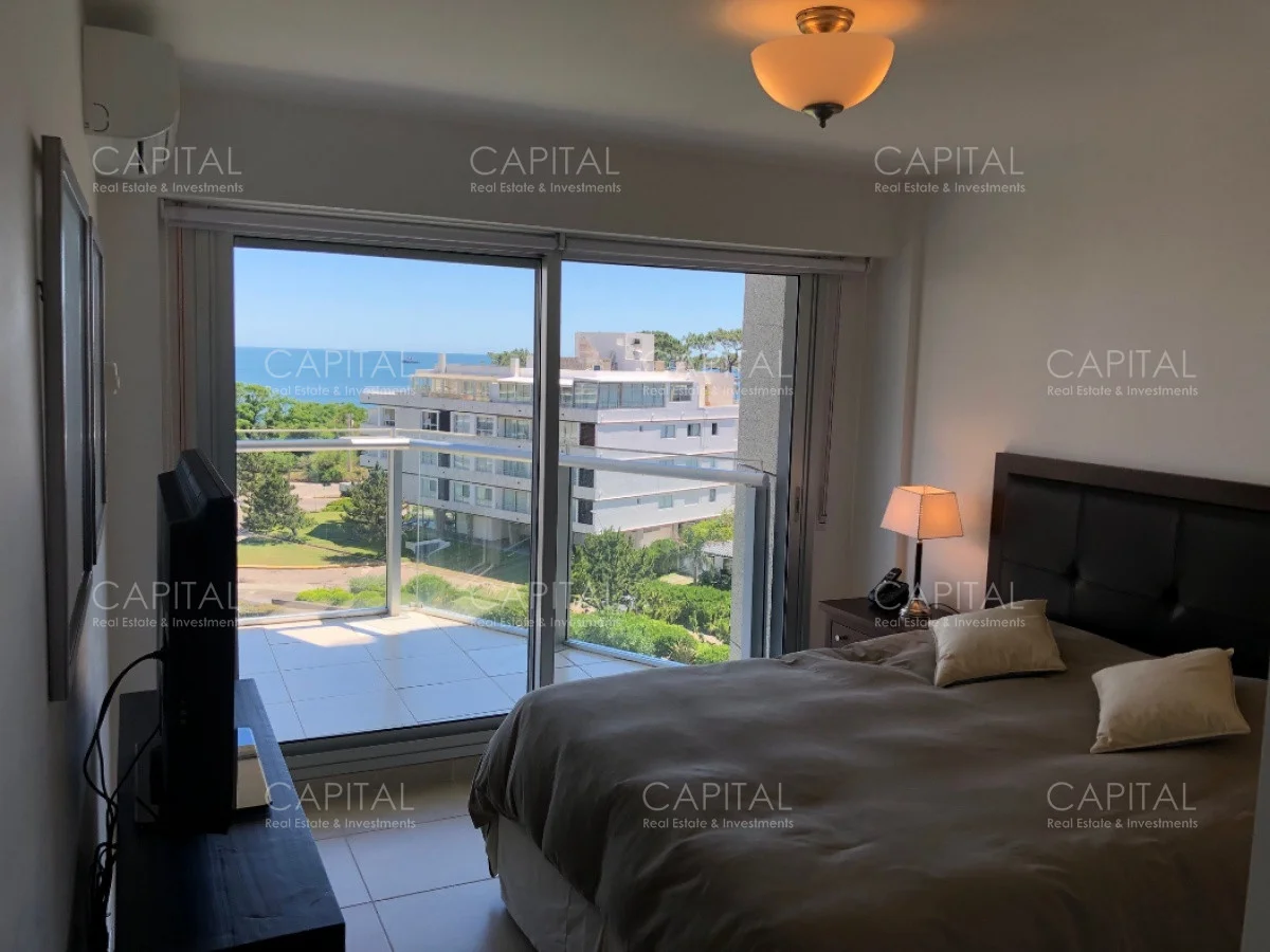 Departamento dos Dormitorios dos baños uno en suite con hidromasaje el otro con box de ducha, living comedor amplio con salida a balcón terraza con vista al mar Playa Mansa, cocina definida anafe a gas, campana, horno eléctrico, lavavajillas, microondas, y salida a lavadero cerrado con lavarropas, tender y pileta. Dormitorio principal con vista al frente, dormitorio secundario con vista agradable al contrafuerte, ambos con amplios placares. Calefacción por losa radiante sectorizada y aire acondicionado en living y dormitorio principal.