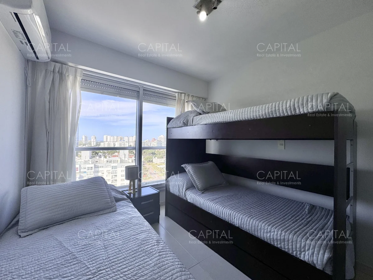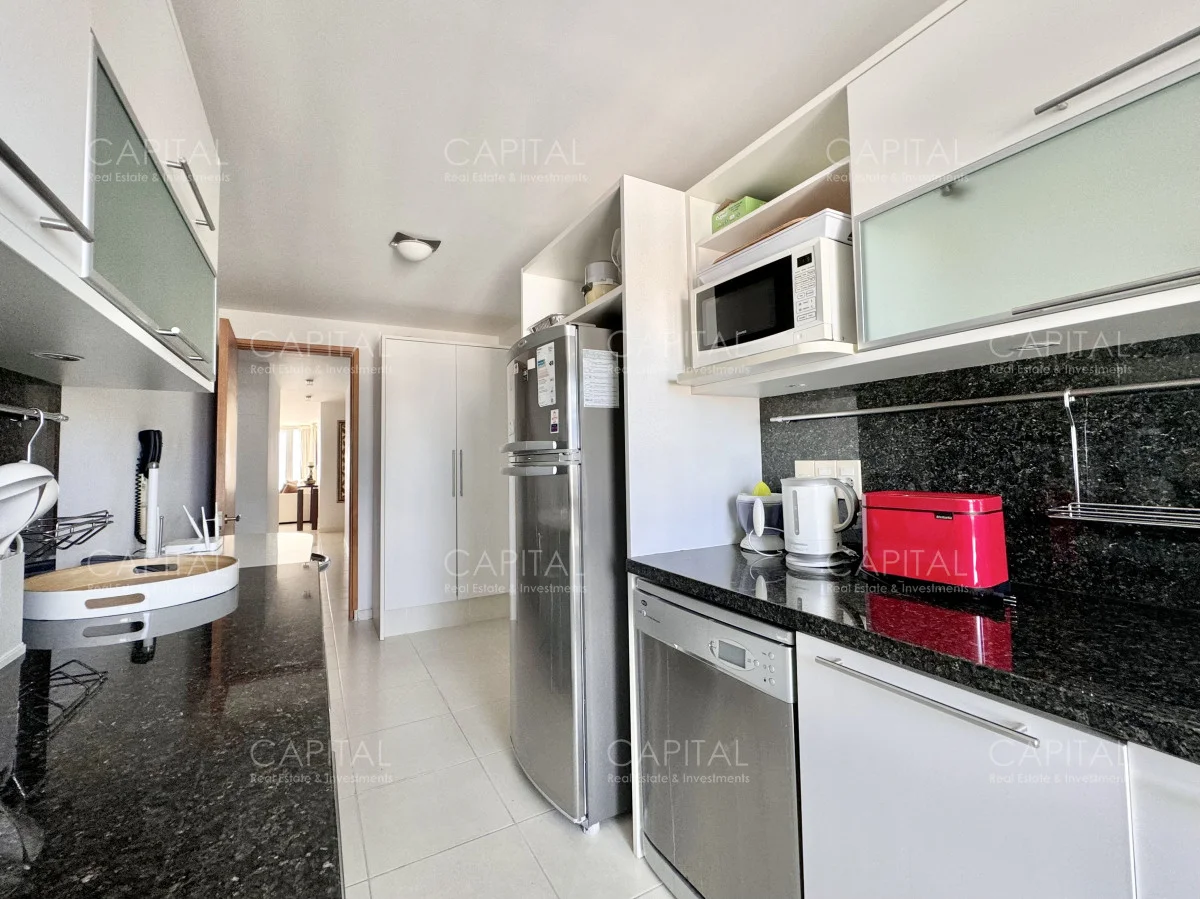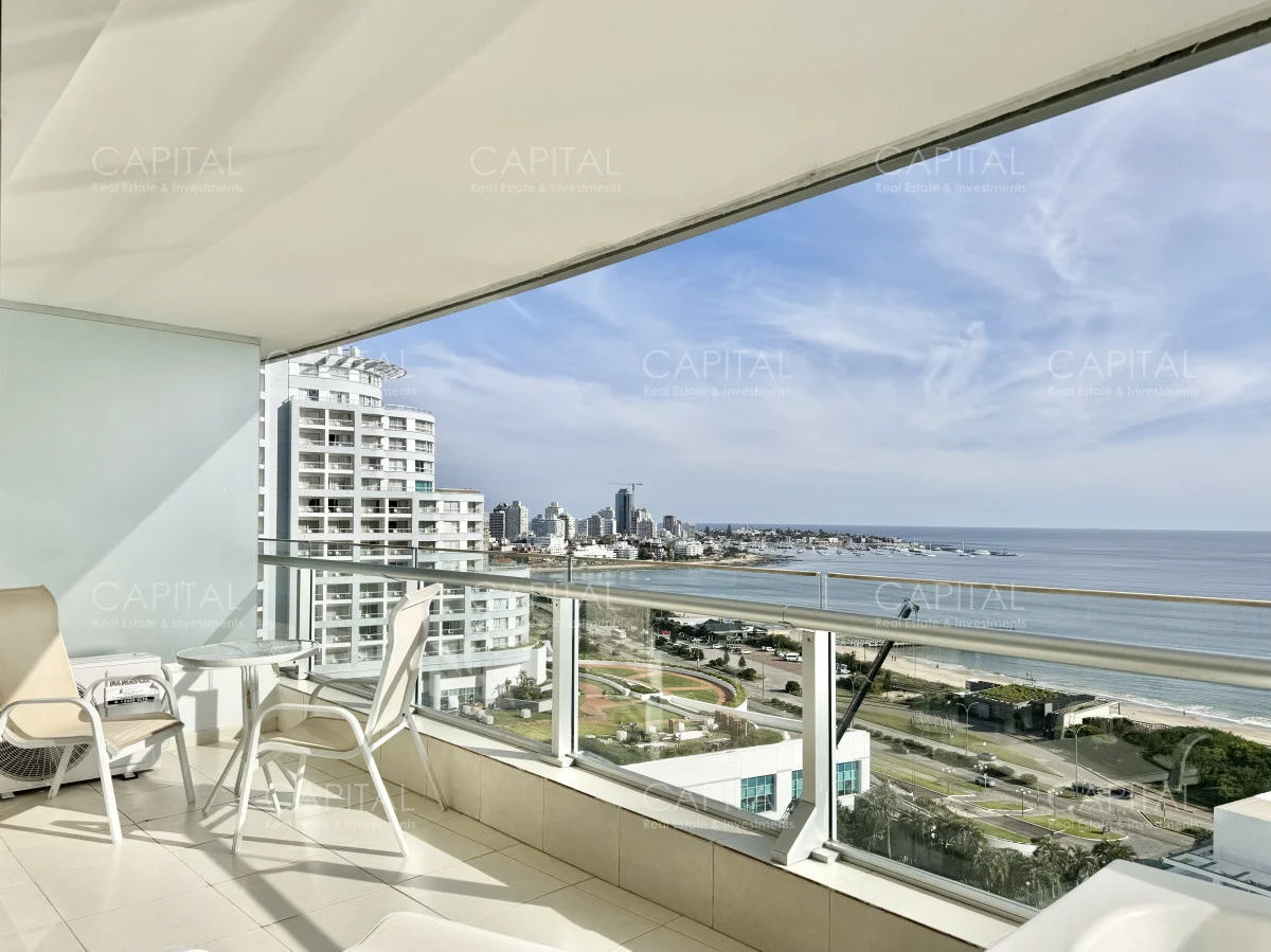 2 dormitorios, 2 baños en suite, toilette, cocina completamente equipada con terraza lavadero. Living-comedor amplio con vista al mar, balcón con jacuzzi para dos personas.