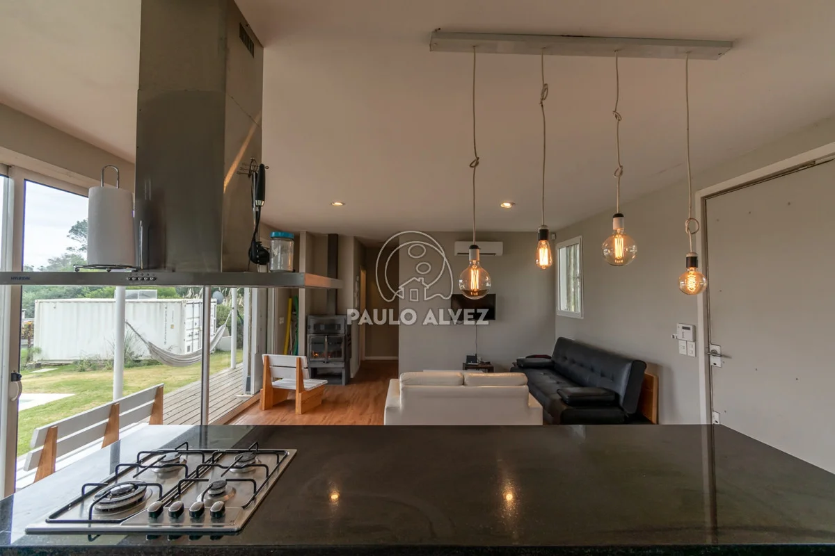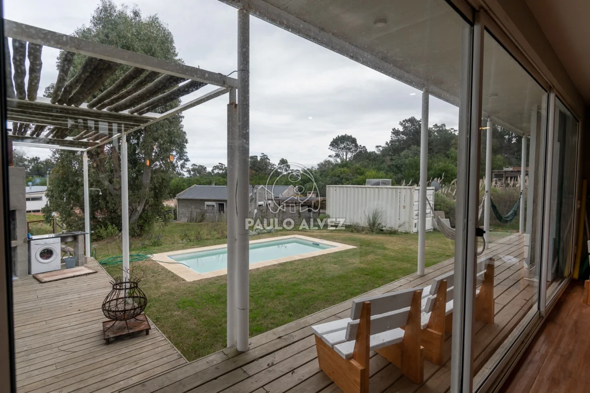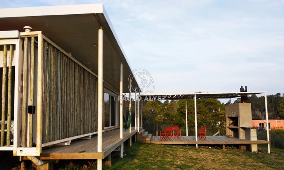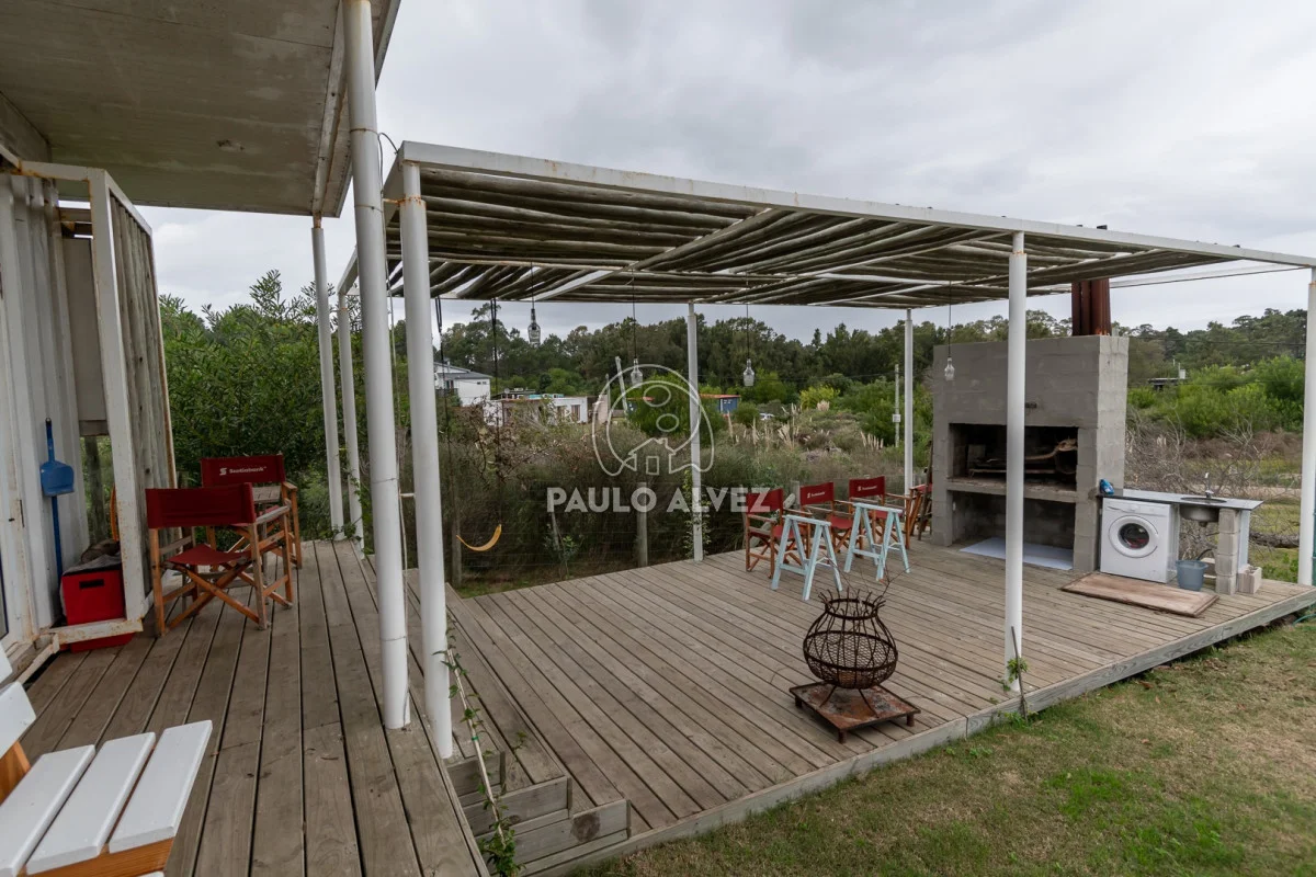 Propiedad de diseño moderno y minimalista a partir de 2 contenedores marítimos de 40 pies. A 700 metros del mar en Punta Colorada, rodeada por un entorno tranquilo y natural. 65 m² edificados sobre una superficie total de 1003 m². Una planta que se desarrolla de manera fluída y funcional, con ambientes cómodos y luminosos distribuidos en living comedor con estufa a leña, cocina integrada, dos dormitorios y baño. Exterior con amplio deck pergolado con parrillero, conectado al área social de la casa. Por más información contáctenos.
