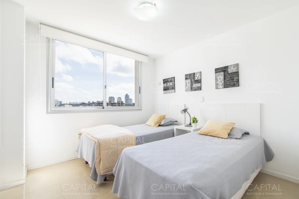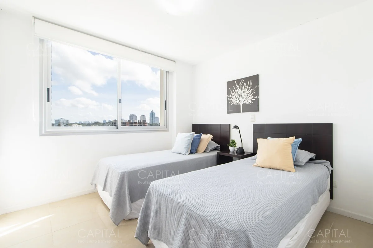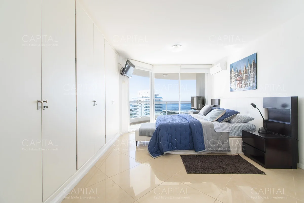 Unidad de 3 dormitorios, 3 baños y 2 suites, con capacidad para 7 personas, está ubicada a solo 80 metros del mar. Cuenta con una cocina definida, living comedor, lavadero, televisión por cable, aire acondicionado, televisión inteligente, servicio de playa y piscina exterior.