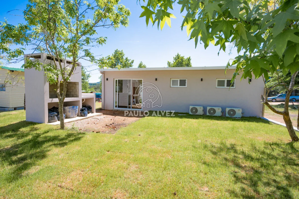 Propiedad a estrenar en Barrio Tierra Calma con su vista única al Cerro Pan de Azúcar. Ubicada en una de las zonas más tranquilas y serenas durante todo el año. Predio de de 300 m², cuenta con 58 m² en construcción tradicional, techo de losa y aberturas en aluminio. Presenta una distribución funcional y cómoda. Al ingresar, nos recibe un luminoso living con estufa. Cocina-comedor se encuentra integrada al ambiente, equipada con muebles bajo y sobre mesada, perfecta para compartir momentos en familia. Pasillo a baño completo, dos dormitorios, el principal en suite y con vestidor, brindando mayor privacidad y confort. Desde la cocina se accede al patio exterior, donde se encuentra un parrillero, ideal para reuniones al aire libre con familia y amigos. Una propiedad que combina naturaleza, comodidad y diseño, perfecta para vivir todo el año. Consúltanos para coordinar tu próxima visita.