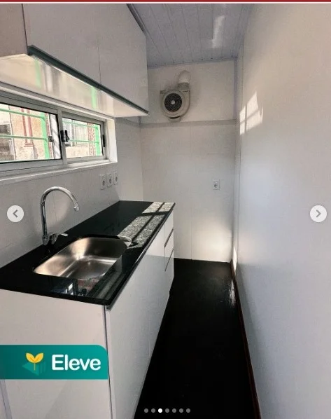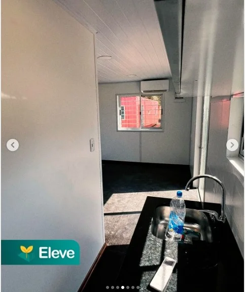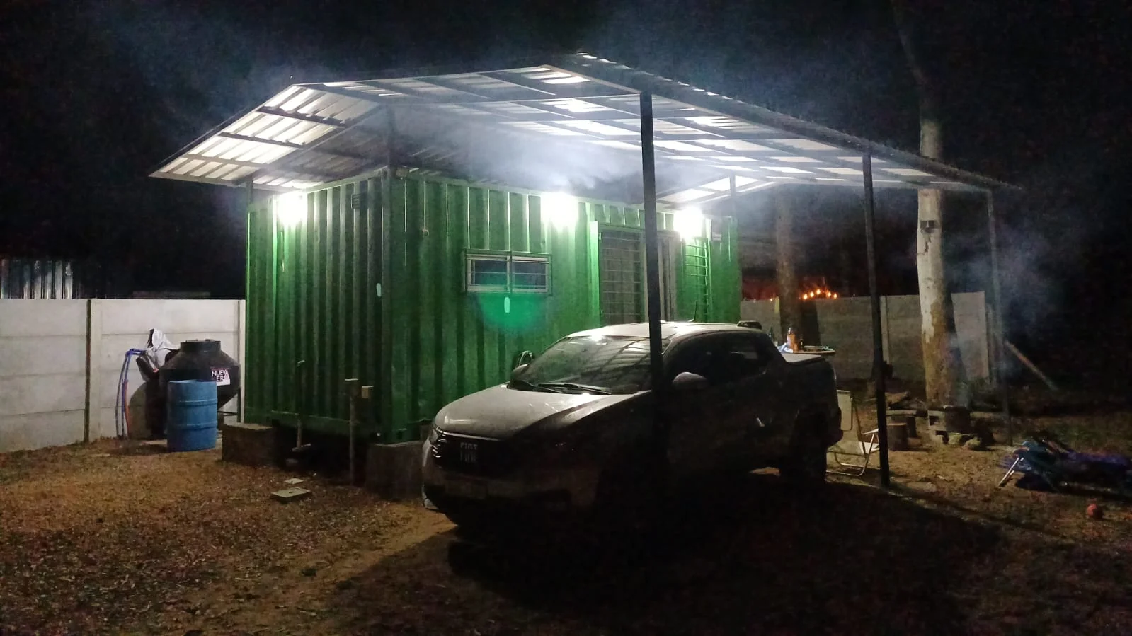 Posee un pozo de agua con dos bombas (una hacia el tanque de 550 litros y otra desde el tanque hacia la casa-container. Además del agua, la vivienda tiene luz eléctrica y pozo negro.