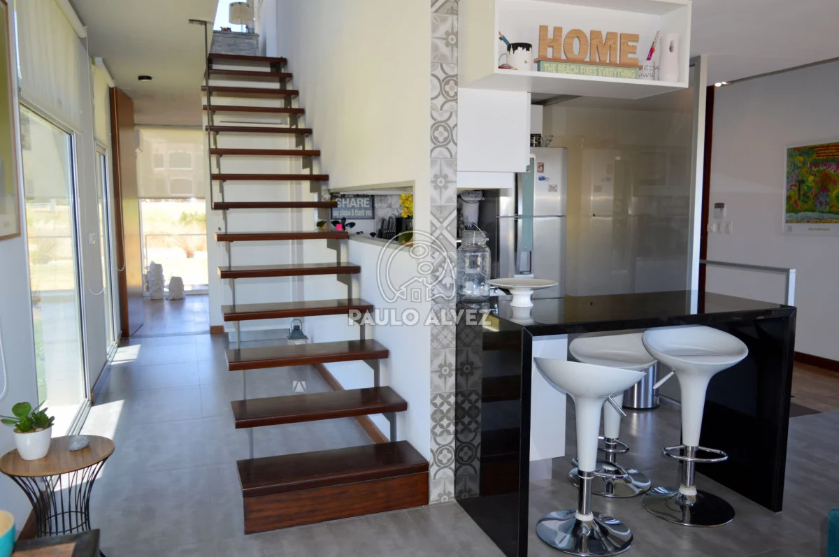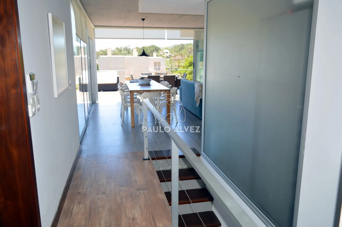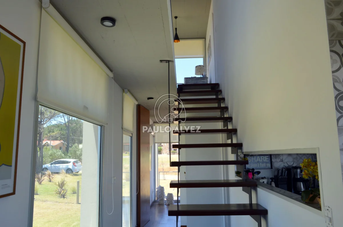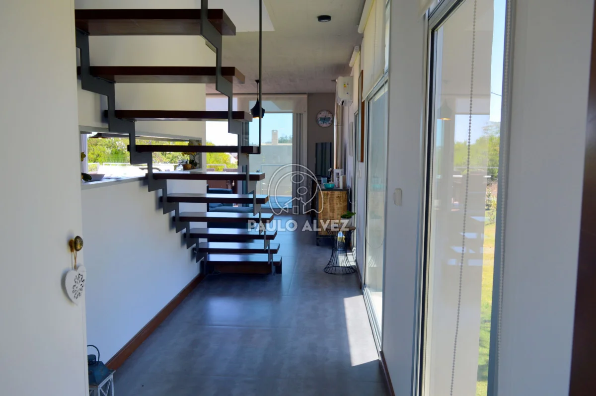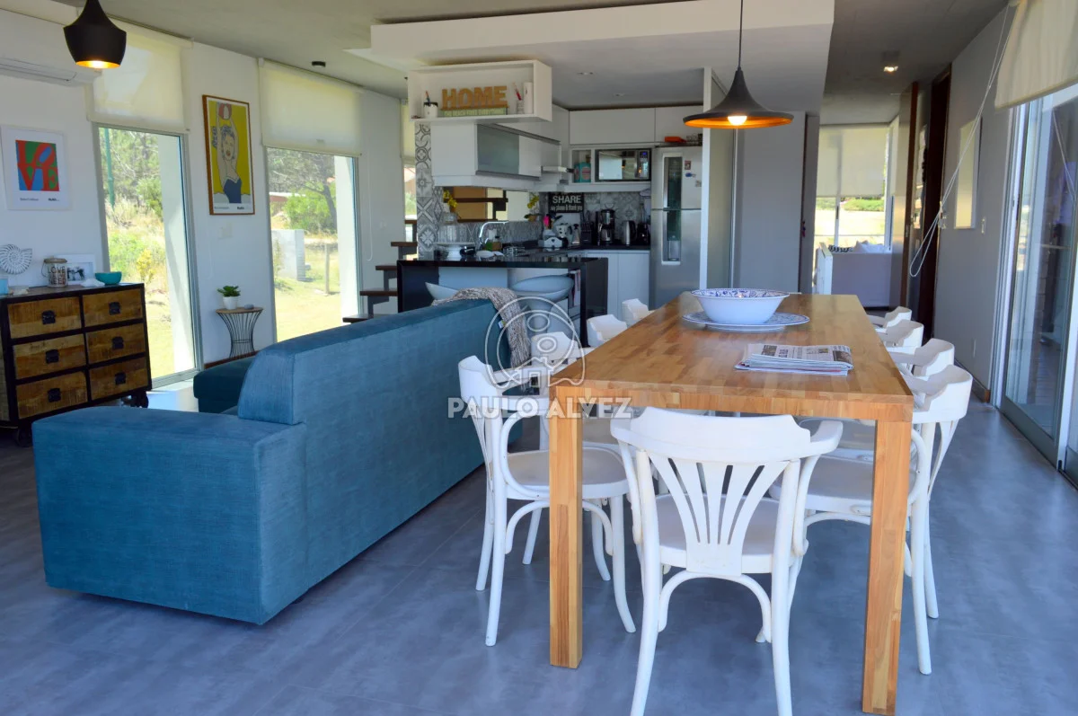 Propiedad de buen calibre desarrollada en 3 plantas, con excelente gusto por el diseño y rodeada por un entorno tranquilo y natural. Acceso principal a planta intermedia, living comedor con estufa a leña de alto rendimiento, tv led con DirecTv, y acceso a terraza integrada mediante puertas ventanas. Esta última, amplia con parrillero y horno a leña, amueblada para disfrutar del aire libre. Cocina funcional con desayunador con equipamiento total. Pasillo a baño social y segundo living con estufa a leña, acceso a balcón delantero y vista al mar; el mismo conecta ambas alas de la propiedad. Escalera a planta alta, escritorio y dormitorio principal en suite (baño completo con bañera) con vestidor y hermosa vista al mar. Pasillo con acceso a terraza superior, ideal para disfrutar de vista panorámica a la costa y cerros.El subsuelo comprende dos dormitorios matrimoniales y baño completo. Amplio fondo y cocheras cubiertas con lavadero. Cerca perimetral, alarma y aire acondicionado en todos los ambientes. Por más información contáctenos.