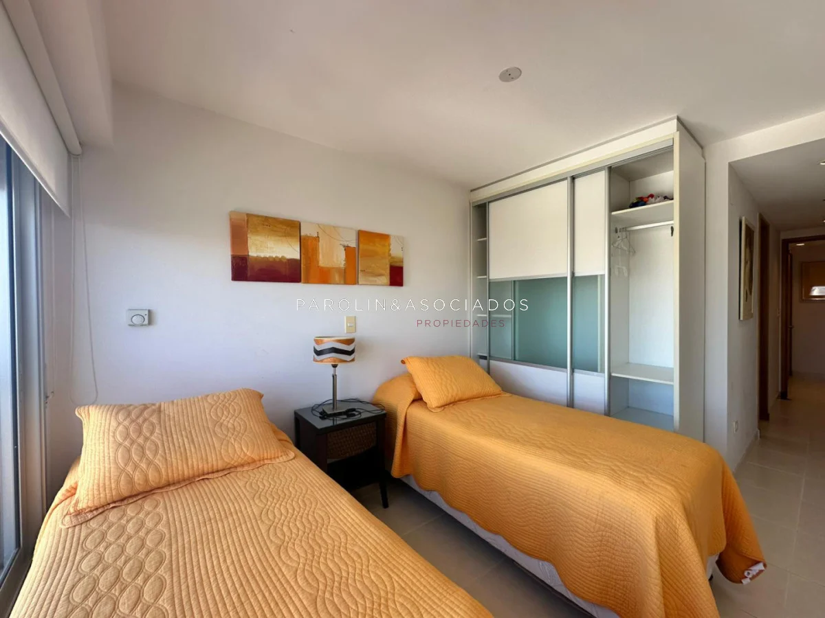 La unidad cuenta con 2 dormitorios en suite y 2 baños, ofreciendo una capacidad ideal para 4 personas. Su cocina definida, totalmente equipada, brinda funcionalidad y estilo, complementándose con un amplio living comedor que invita a disfrutar de momentos de relax o reuniones familiares en un ambiente luminoso y acogedor.
