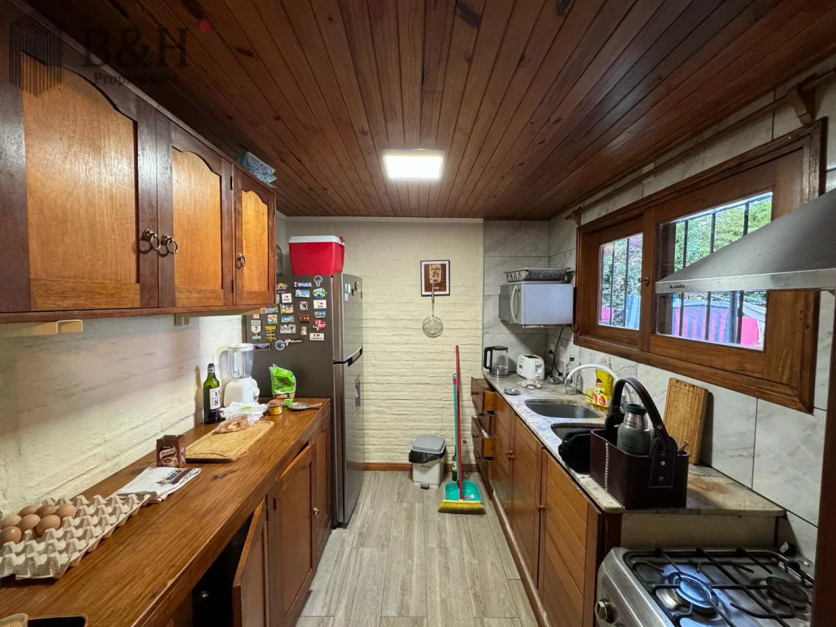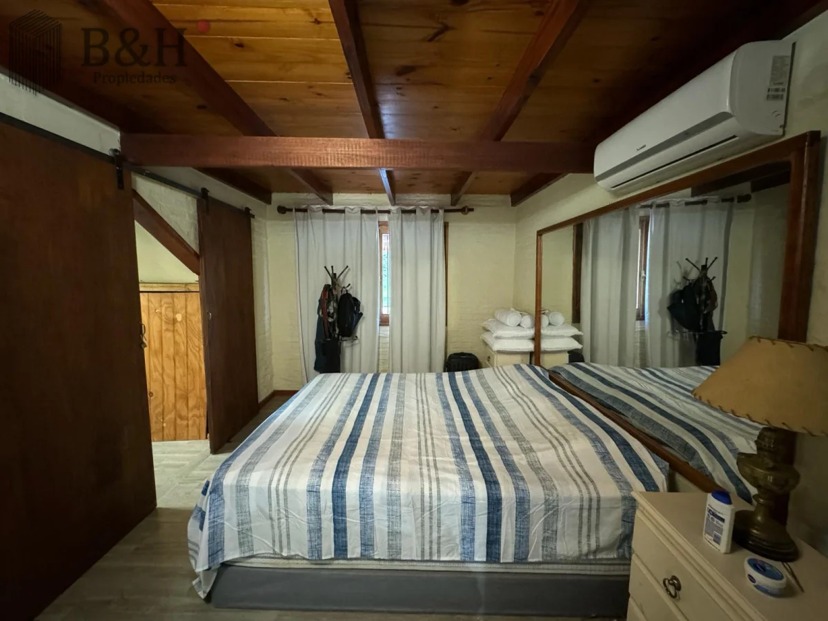 La cocina está completamente equipada y definida, con anafe, microondas, heladera con freezer, horno y campana extractora. Los dormitorios cuentan con placares empotrados, brindando amplio espacio de almacenamiento. Además, la casa está equipada con aire acondicionado y televisión.