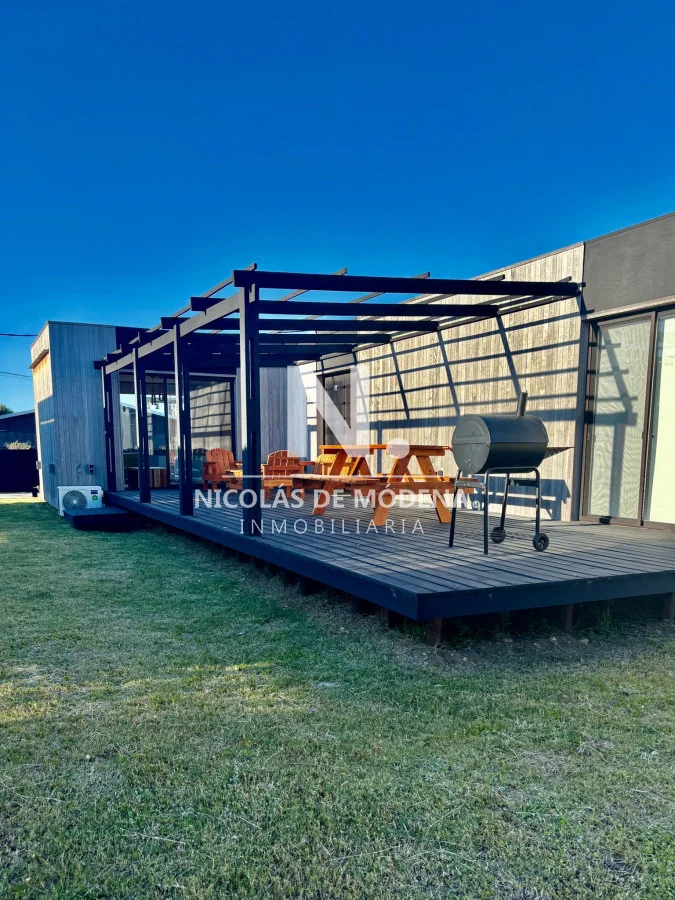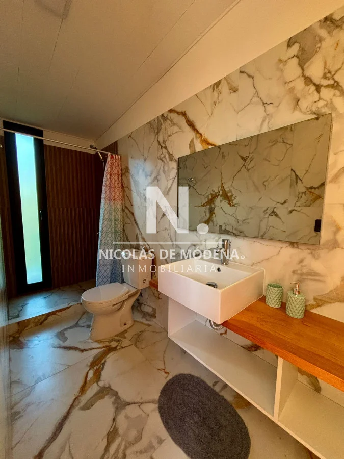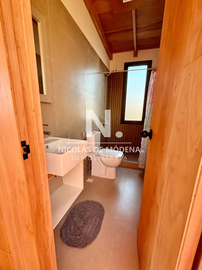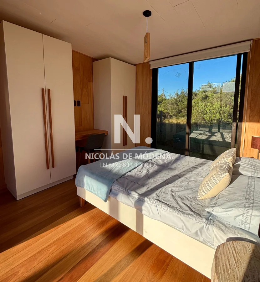 La casa cuenta con 3 dormitorios cuidadosamente distribuidos, dos de ellos en suite, brindando privacidad y confort para sus ocupantes. Con capacidad para albergar hasta ocho personas, gracias a sus siete camas, es ideal para familias o grupos que buscan disfrutar de momentos inolvidables en un entorno sereno. Los baños, modernos y funcionales, están diseñados con materiales de calidad, aportando practicidad y estilo.