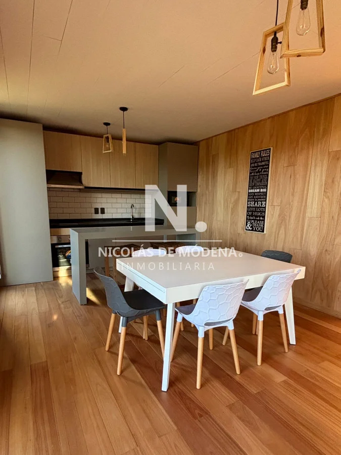La cocina, definida y completamente equipada, es un espacio práctico para preparar y compartir comidas. El living y el comedor, luminosos y acogedores, se integran armónicamente, creando un ambiente cálido y relajante para compartir en familia o con amigos. Grandes ventanales permiten la entrada de luz natural y conectan el interior con el jardín, que ofrece un espacio perfecto para disfrutar al aire libre.
