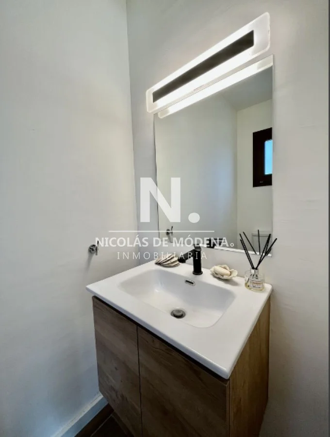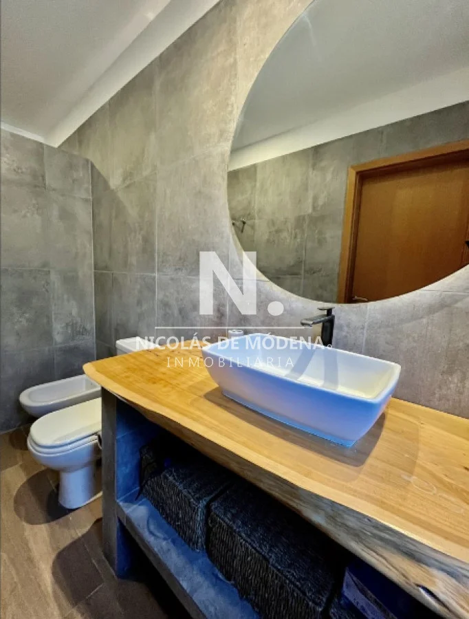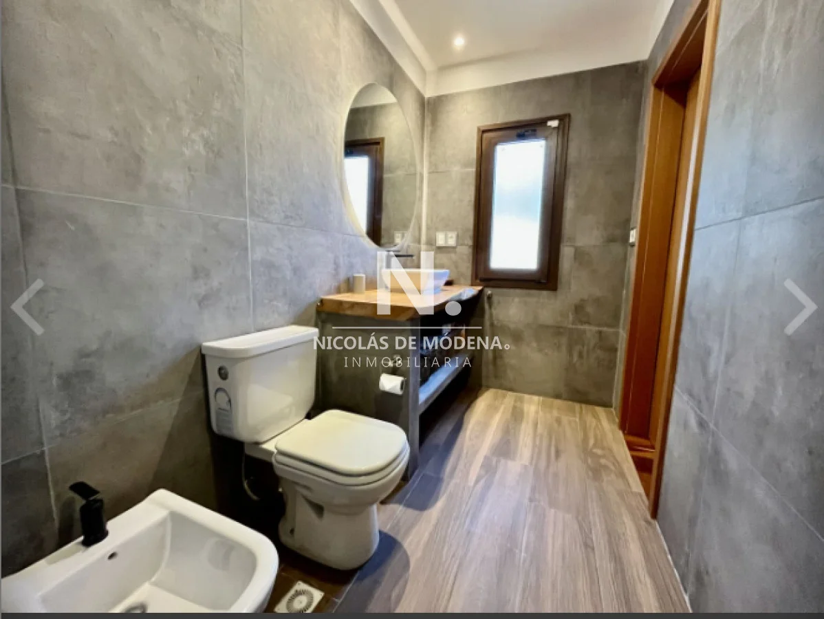El equipamiento adicional de la casa incluye aire acondicionado para climatización, televisión para entretenimiento, y detalles como placards en los dormitorios y en la cocina para un almacenamiento organizado. El baño cuenta con bañera y bidet, ofreciendo comodidades adicionales.
