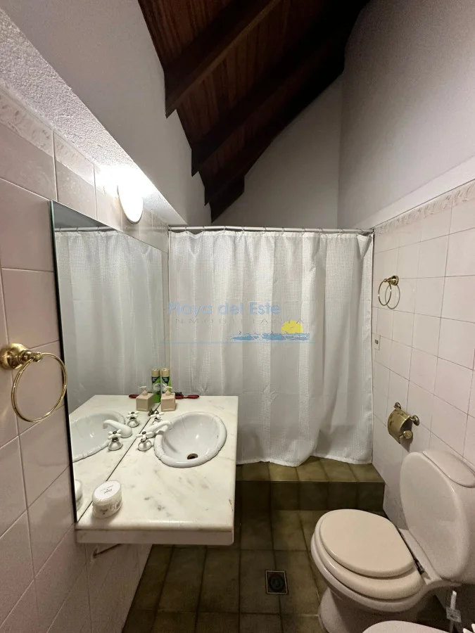 Excelente propiedad en venta de gran construcciòn situada en uno de los lugares mas buscados de Punta del este Posee 4 dormitorios en suite, todos con placares y aire acondicionado individual Living comedor con estar amplio, estufa a leña y luminoso Cocina con desayunador que comunica a la dependencia de servicio con baño completo Gran jardin con 2918m2 de terreno y 688 m2 edificados Piscina climatizada cercada Lavadero y despensa Barbacoa con cuarto, estar y baño completo para invitados Cochera Cuenta con pozo para riego, alarma. Techo de teja Consulte con nuestros asesores para agendar su visita Referencia Interna : Tera-14772