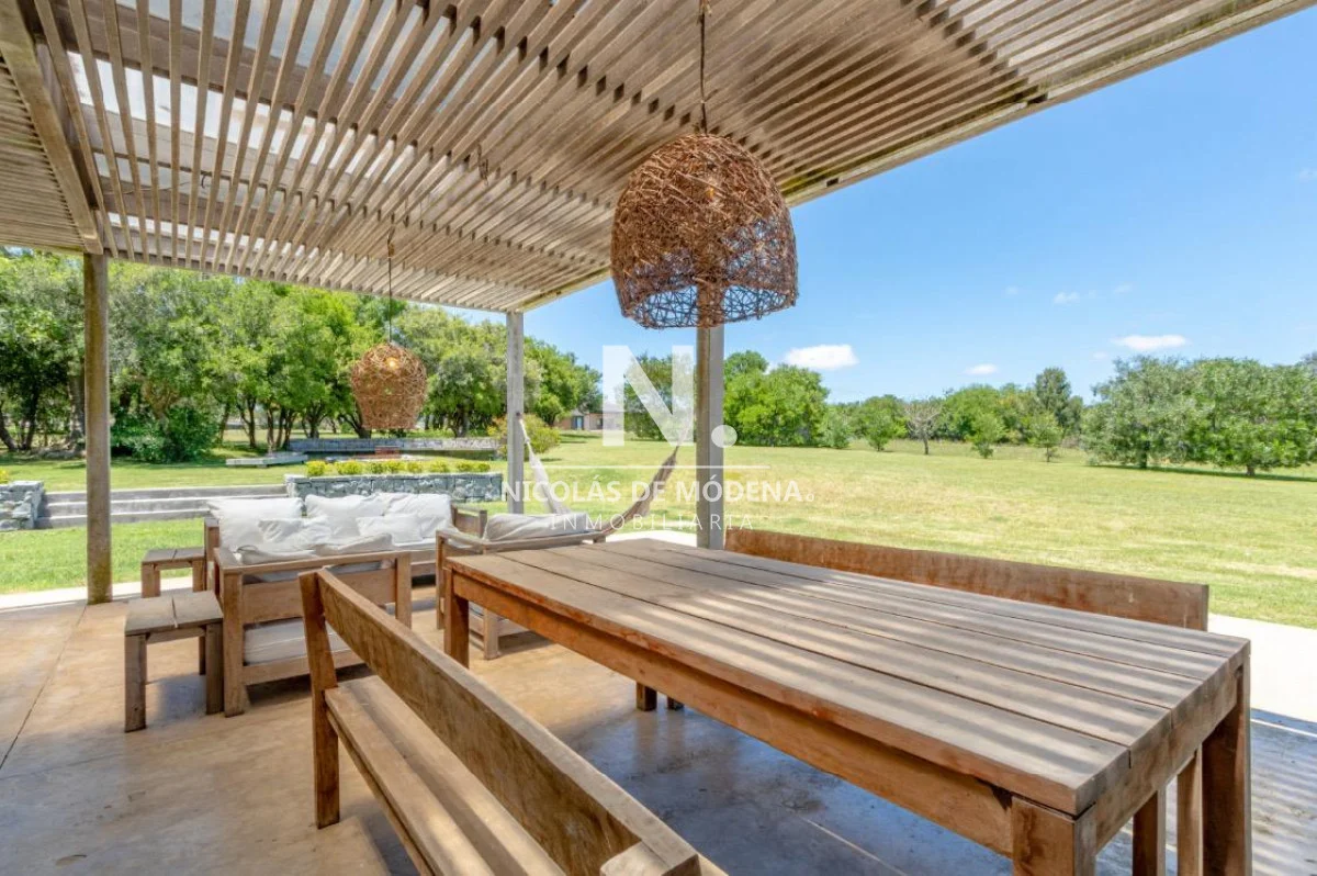 Además de sus atributos internos, esta casa cuenta con amenidades exclusivas dentro del club, como una piscina con club house y restaurante, canchas de tenis y paddle, campo de fútbol, áreas para cabalgatas, acceso a una playa junto al arroyo con kayaks disponibles, y una huerta.