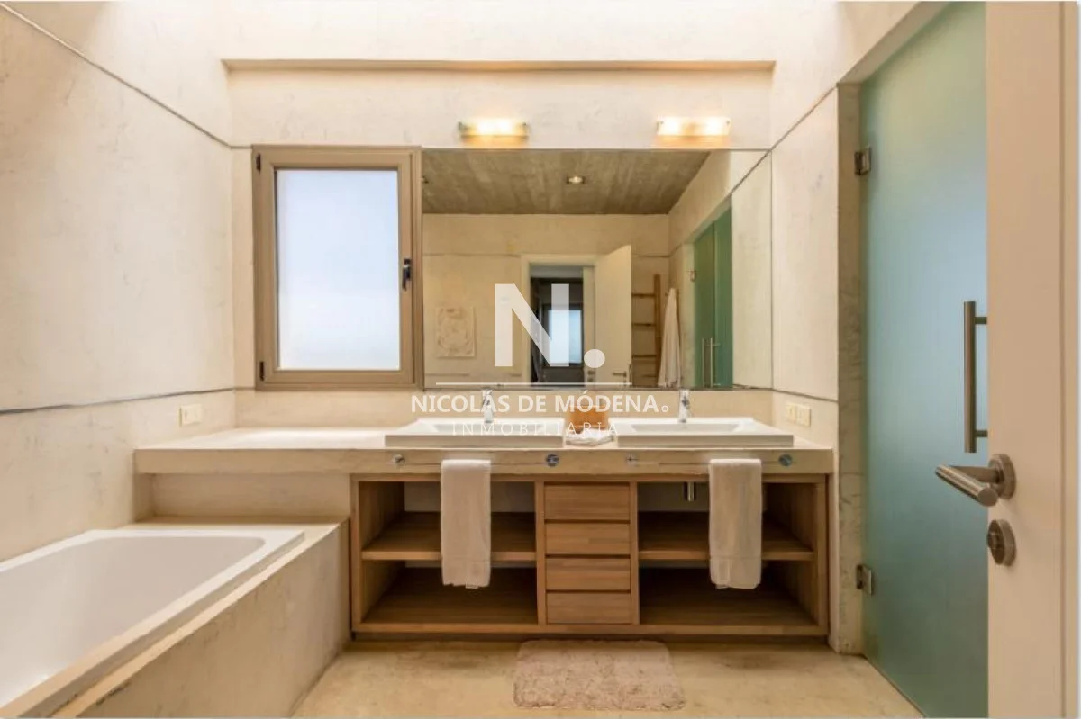Los espacios interiores son igualmente impresionantes, con un living comedor espacioso, una biblioteca acogedora, perfecta para momentos de tranquilidad. La cocina está completamente equipada y conectada con un lavadero, asegurando practicidad en el día a día. Dos terrazas permiten disfrutar del aire libre y ofrecen vistas panorámicas del entorno natural que rodea la propiedad.