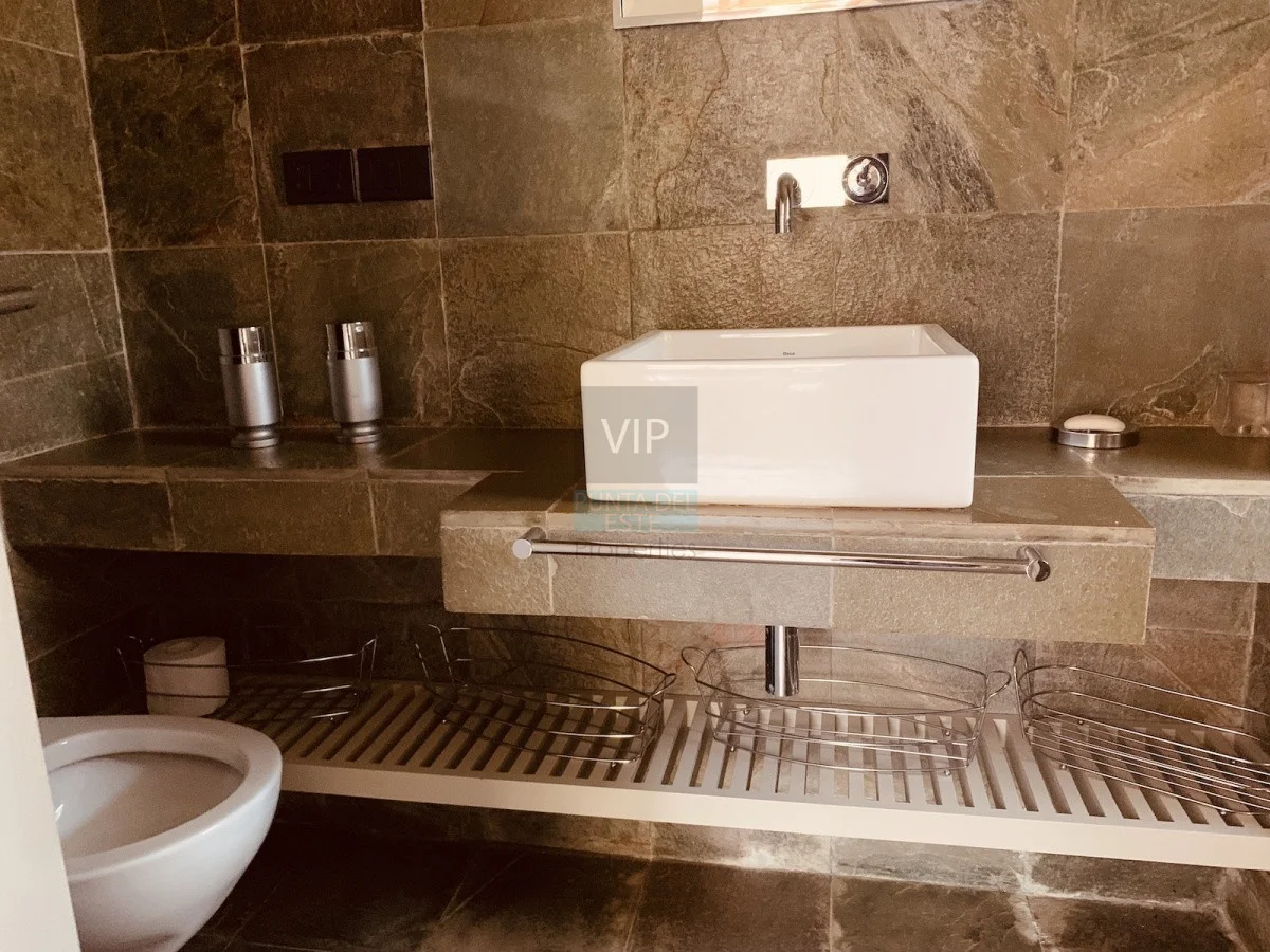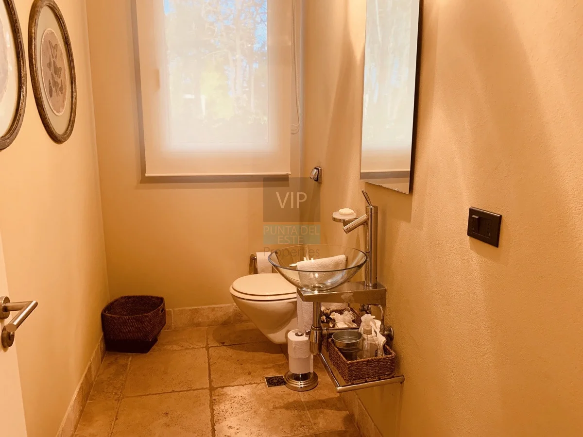 De las 4 suites que están en planta alta ,2 de ellas con excelente vista a la laguna. Piscina climatizada, con una simpática parrilla que se incorpora a la galería.