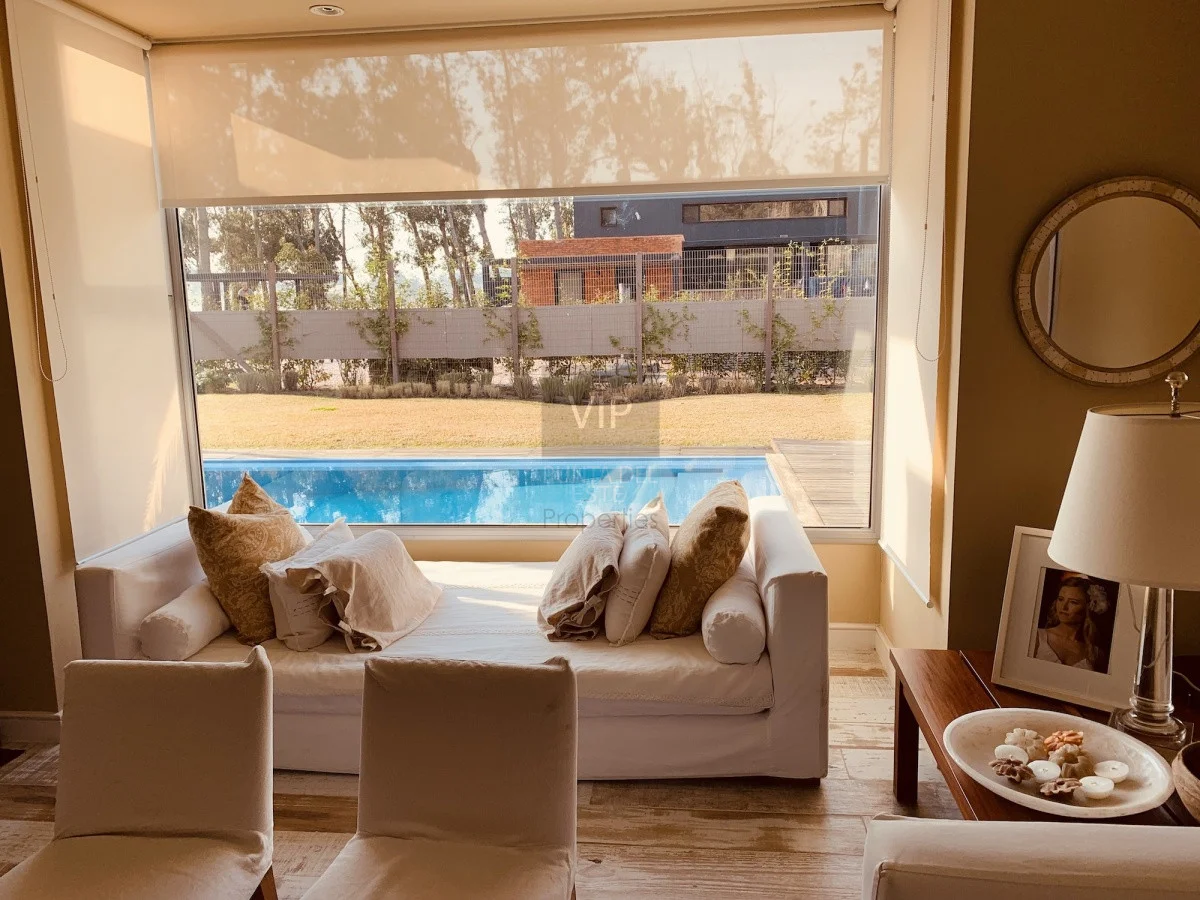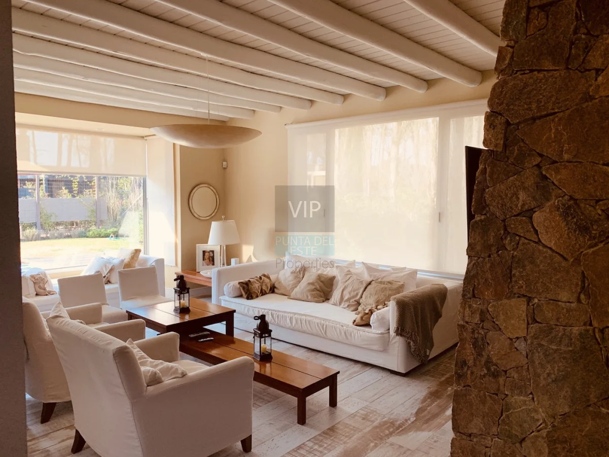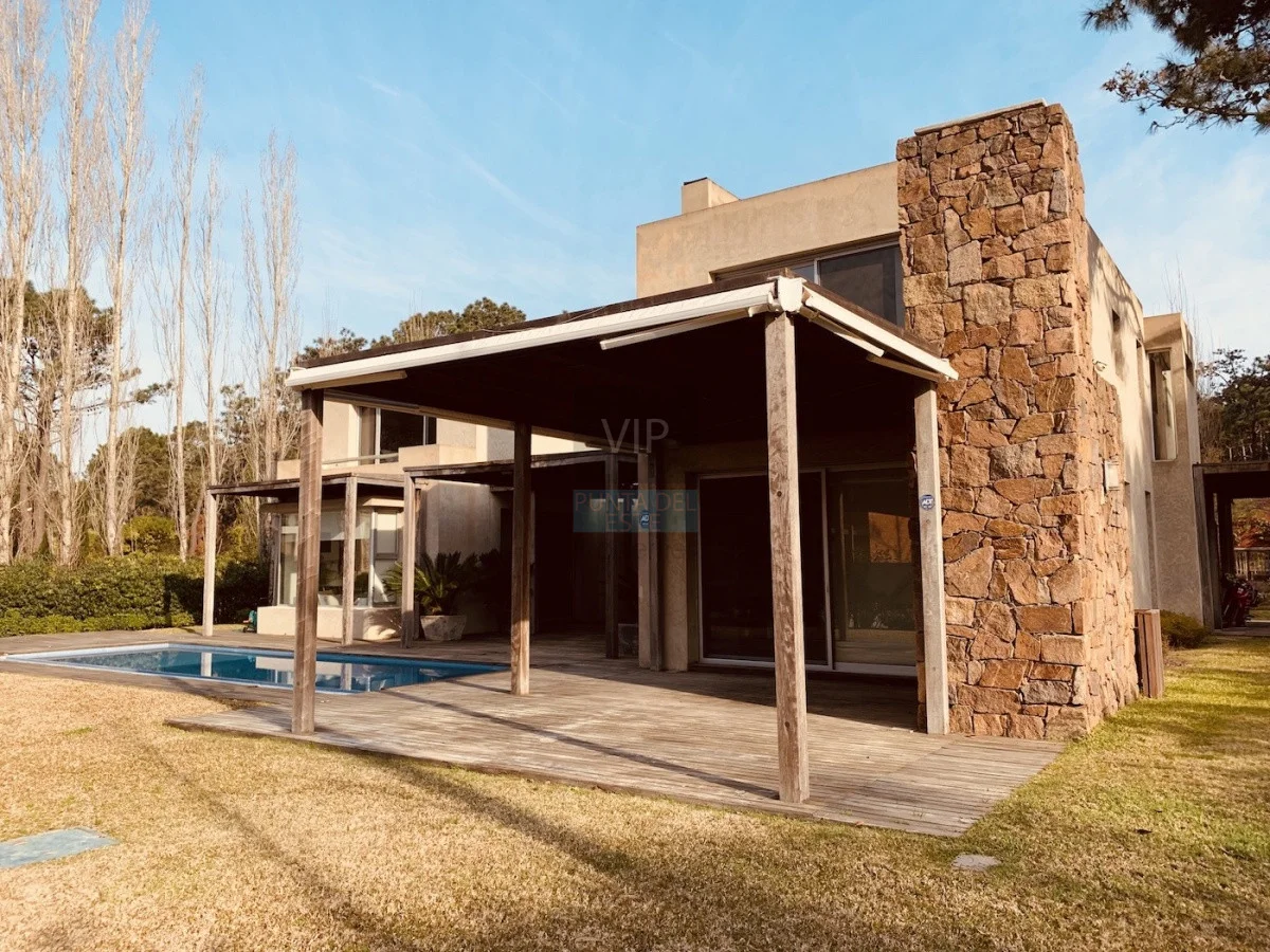 Excepcional casa ubicada dentro del club privado de Laguna Blanca, sobre laguna diseño del Arq Marcelo Daglio, orientada al norte, hace de su hermoso jardín con piscina, un lugar inmejorable.
