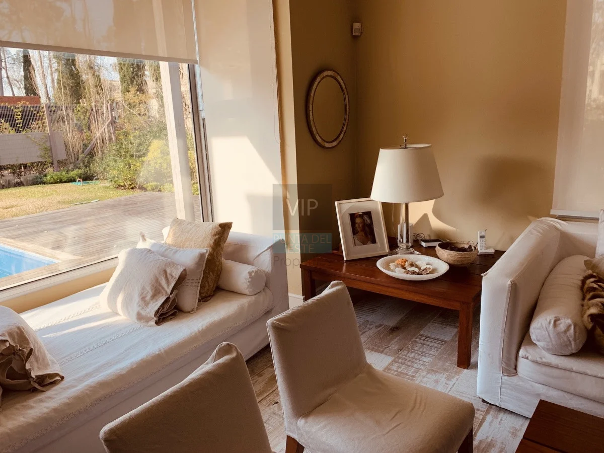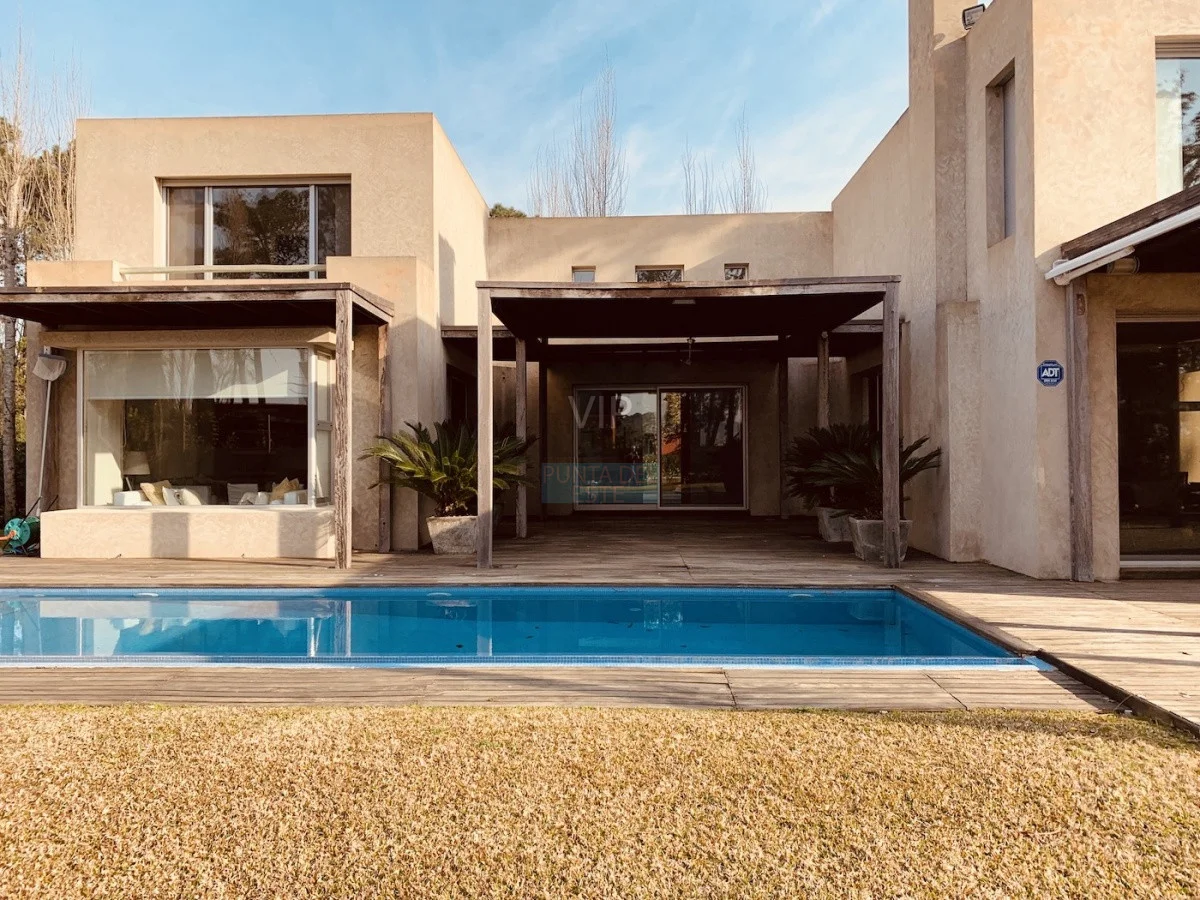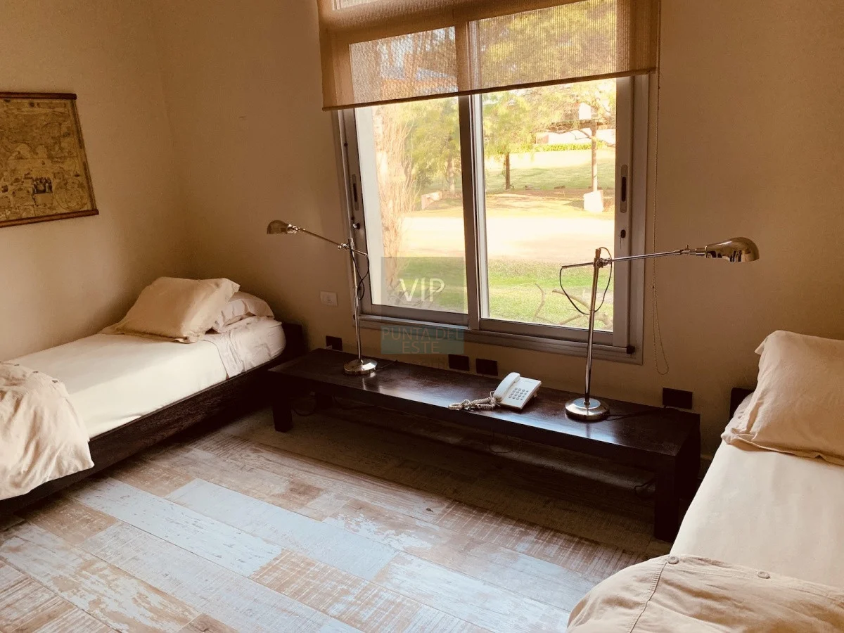 Excepcional casa ubicada dentro del club privado de Laguna Blanca, sobre laguna diseño del Arq Marcelo Daglio, orientada al norte, hace de su hermoso jardín con piscina, un lugar inmejorable.