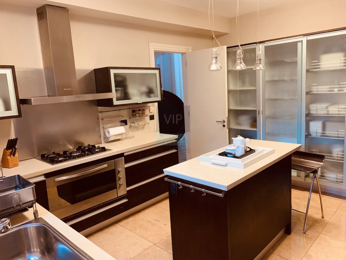 5 suites, comedor, living, área de tv con hogar, cocina, área de servicio, lavadero.