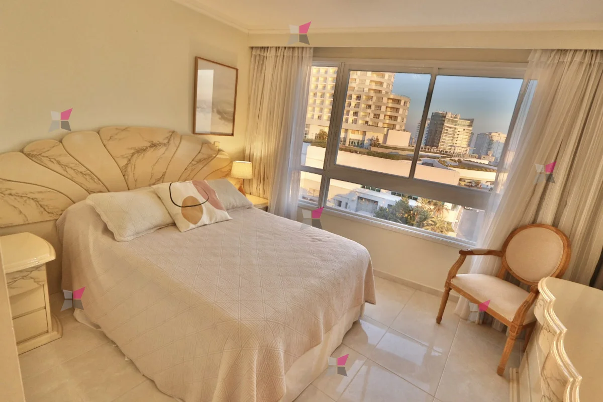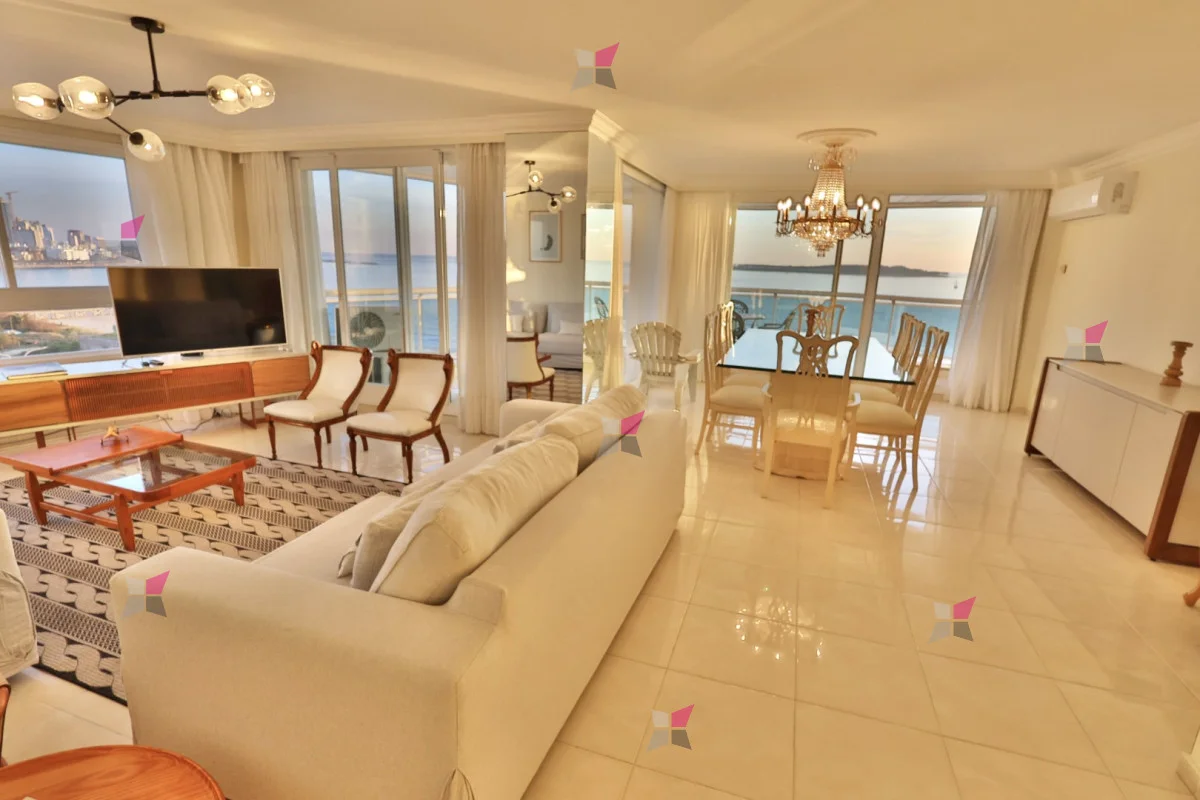 Ubicado en primera línea frente al mar, este apartamento se destaca por su excelente orientación solar y sus ambientes amplios y luminosos. Al ser esquinero, recibe luz natural durante todo el día y ofrece vista directa a Playa Mansa desde el living comedor.