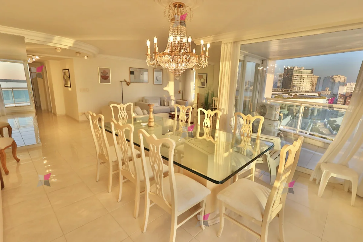 Cuenta con 3 dormitorios en suite, toilette, y dependencia de servicio con baño propio. Cocina definida y un espacioso living comedor, salida a terraza con vista abierta al mar.